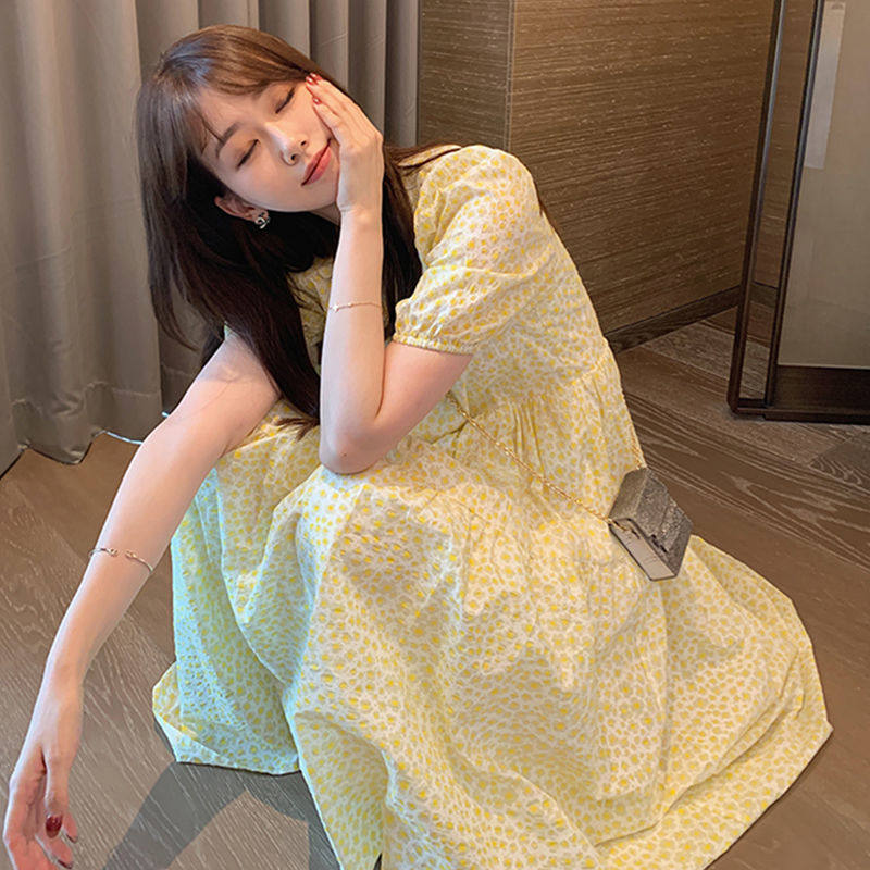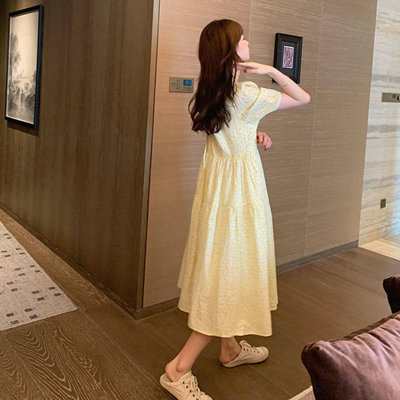 Свежее небольшое платье, дизайнерская летняя длинная юбка, коллекция 2022, подходит для подростков, французский стиль, рукава фонарики, в цветочек