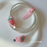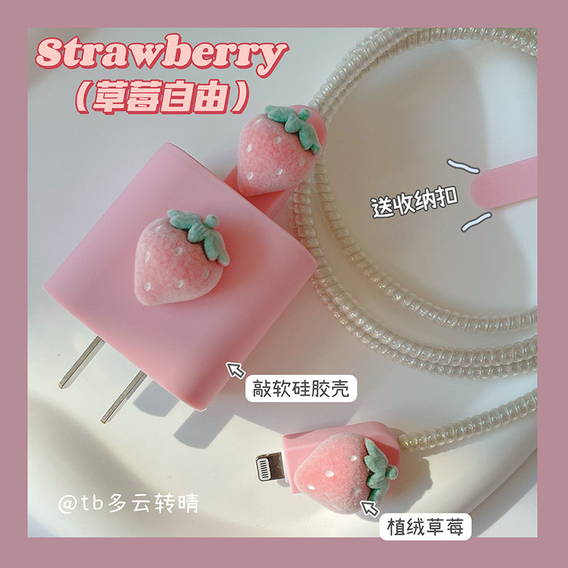 Защитная крышка кабеля для передачи данных с флокированным клубничным покрытием, подходящая для зарядного устройства iphone14/13, защитная обмотка крышки для предотвращения складывания