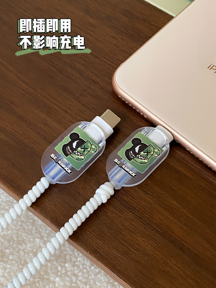 Защитный чехол для кабеля передачи данных Apple 13 14 plus для быстрой зарядки iphone11promax, подходит для зарядного устройства Apple 20 Вт, защитный чехол 12, мультяшный милый зеленый жестокий медведь, чехол для обмотки кабеля