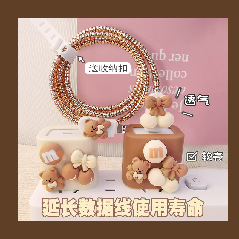 Apple, мультяшный совместимый защитный чехол, iPhone 14, силиконовое зарядное устройство, мобильный телефон, зарядный кабель, с медвежатами, 14promax, iphone, 18W, 20W