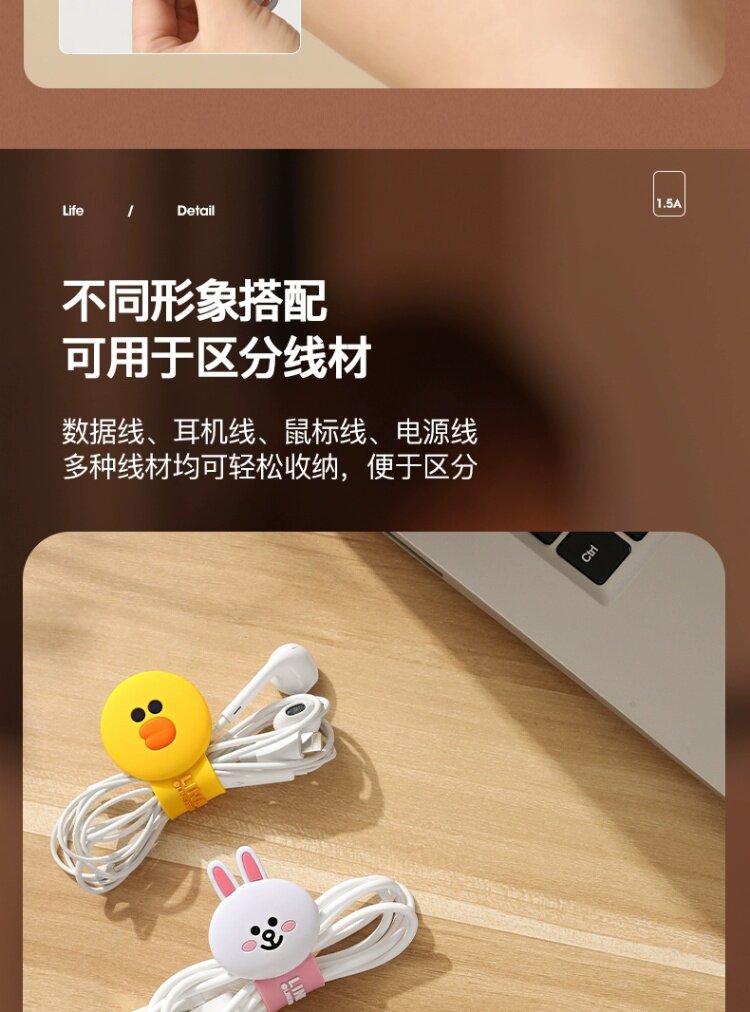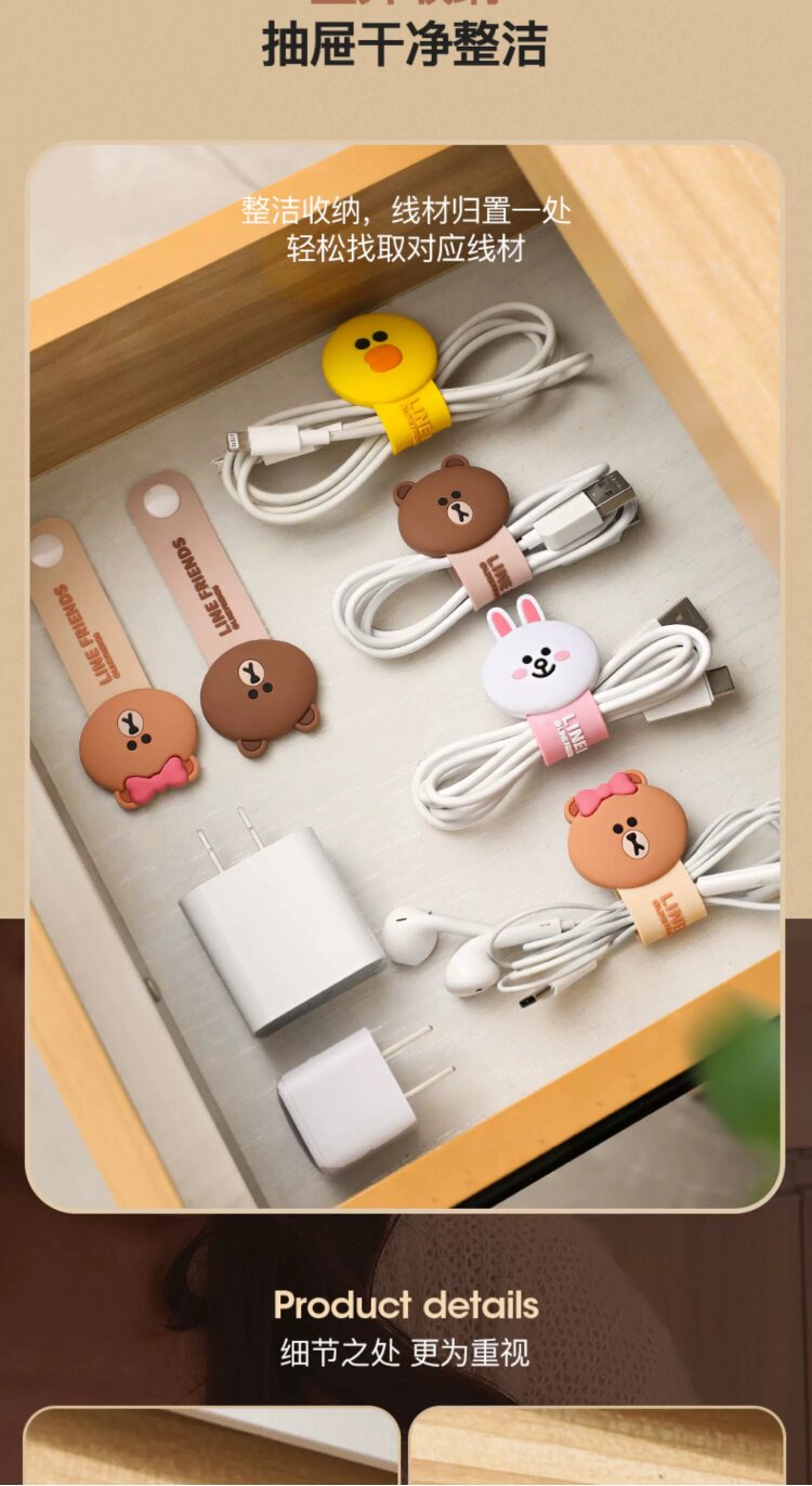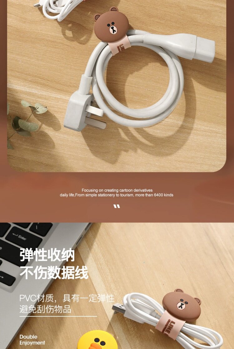 Кабель для передачи данных Line Friends Brown Bear, защитная крышка кабеля, зарядный кабель, кабельный кабель, контроллер кабеля, зарядное устройство Apple, кабель для мобильного телефона, взрывозащищенная обмотка кабеля, обертка контроллера кабеля, набор кабельных стяжек, компьютерный кабель контроллера кабеля, мягкий силикон для хранения кабеля