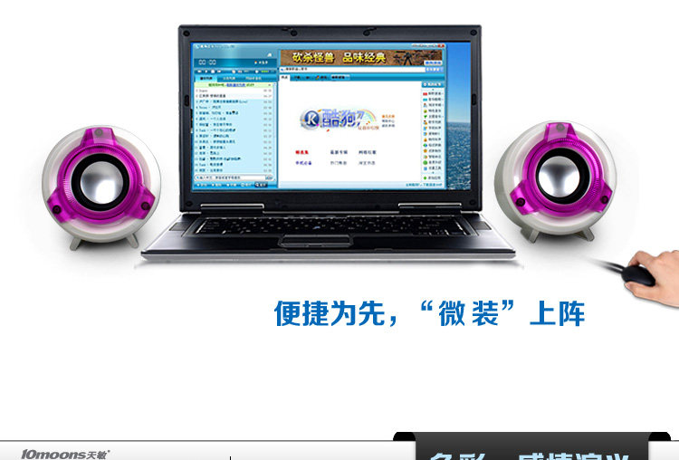 Мультяшный ноутбук, маленький мобильный телефон, колонки, проводное управление