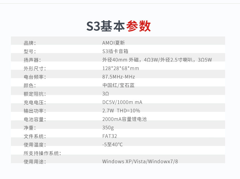 Amoi/夏新 S3 Portable Olderly Retiner вставка карты Mp3 Play