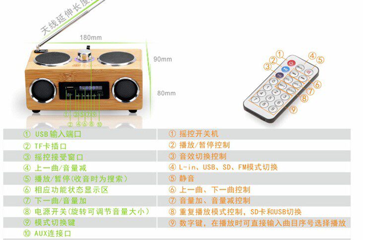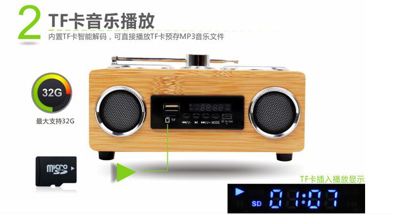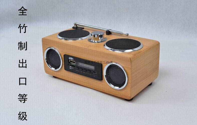 Bluetooth High -End Fashion Export All -Bamboo Plug -In Card Speaker FM Радио бамбук