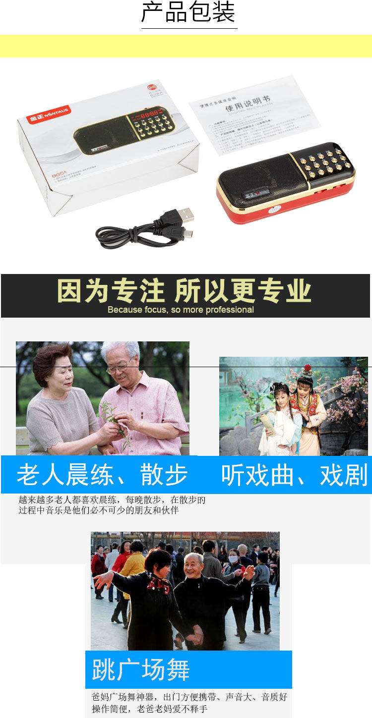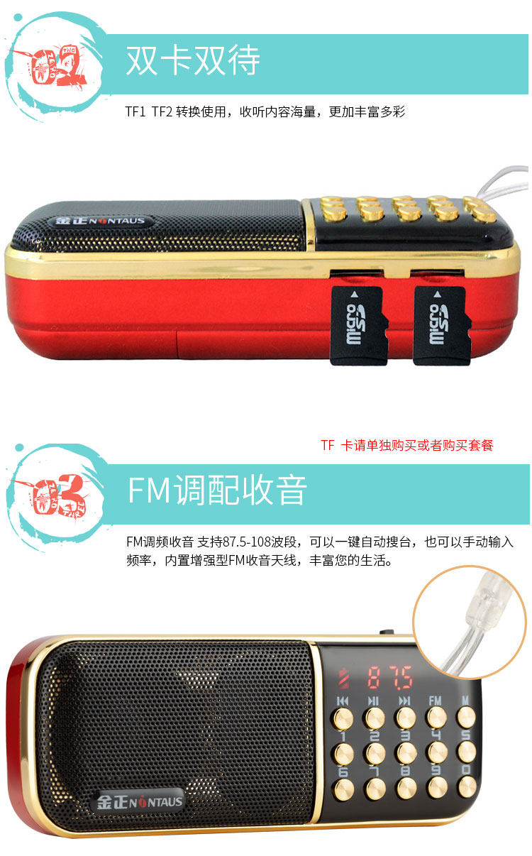 Kim Jongjin Mini Audio Portable FM Plug -Plug -in U Диск Радио Старик Утренний упражнение Маленькое динамик MP3 -плеер