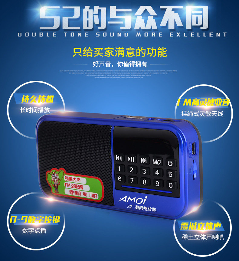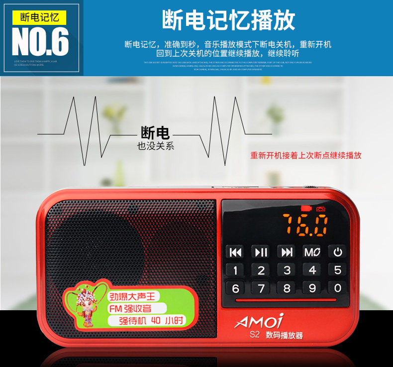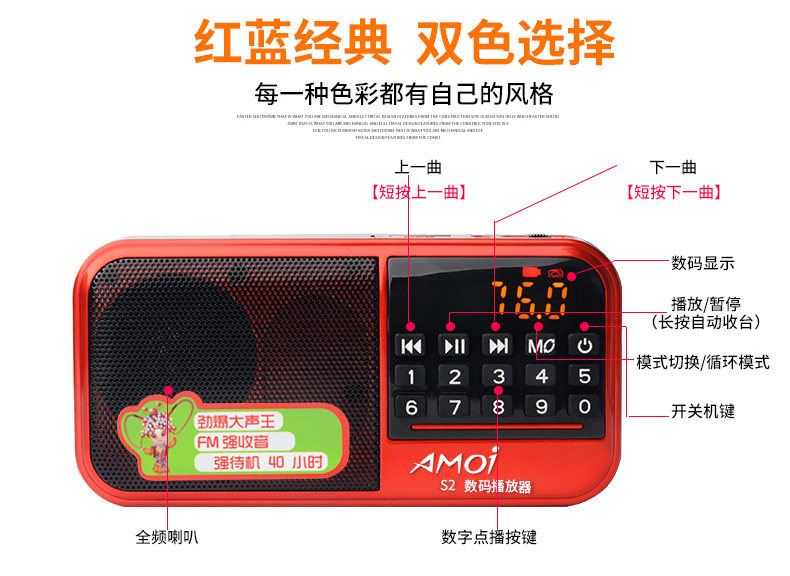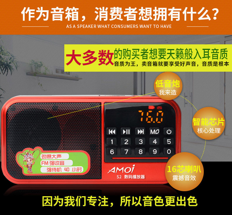 Amoi/夏新 S2, колонки для пожилых людей, портативный маленький плеер, MP3