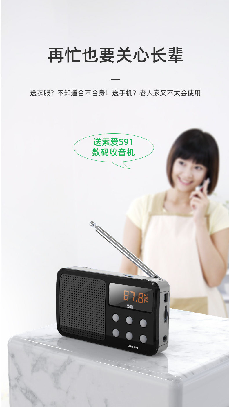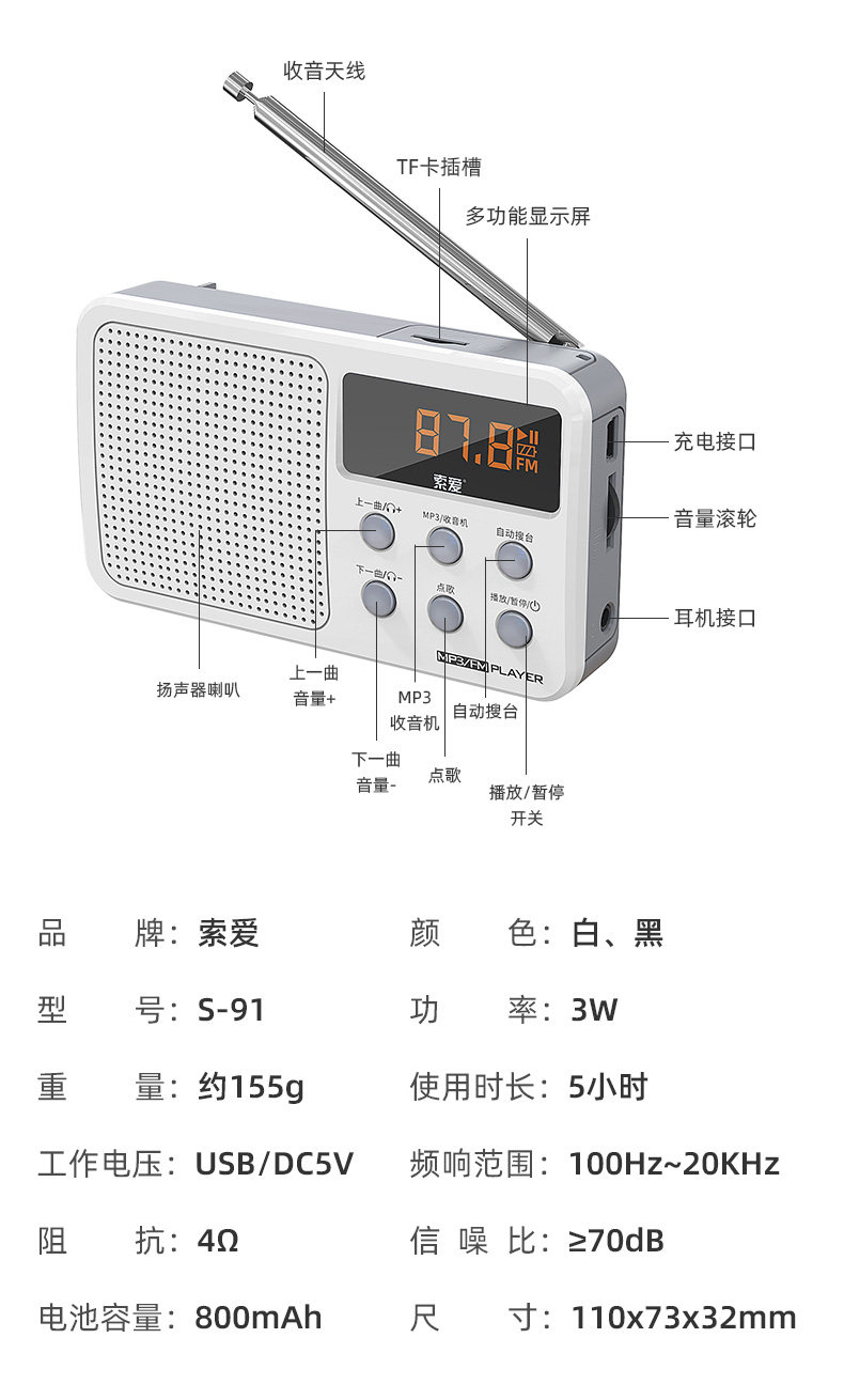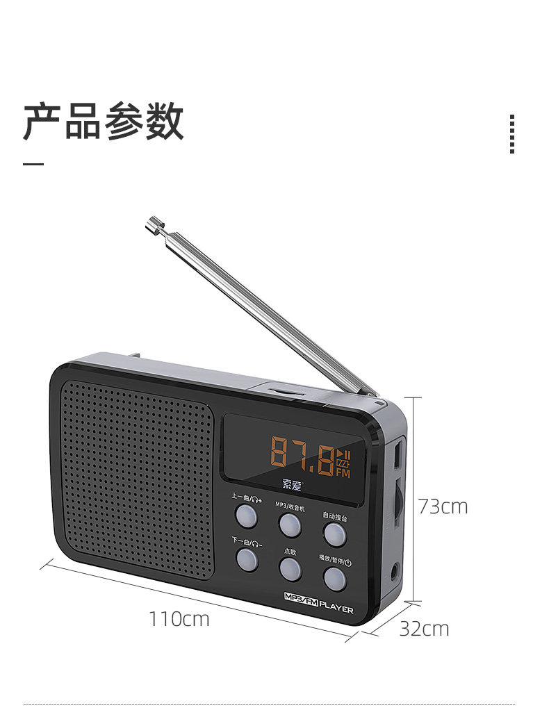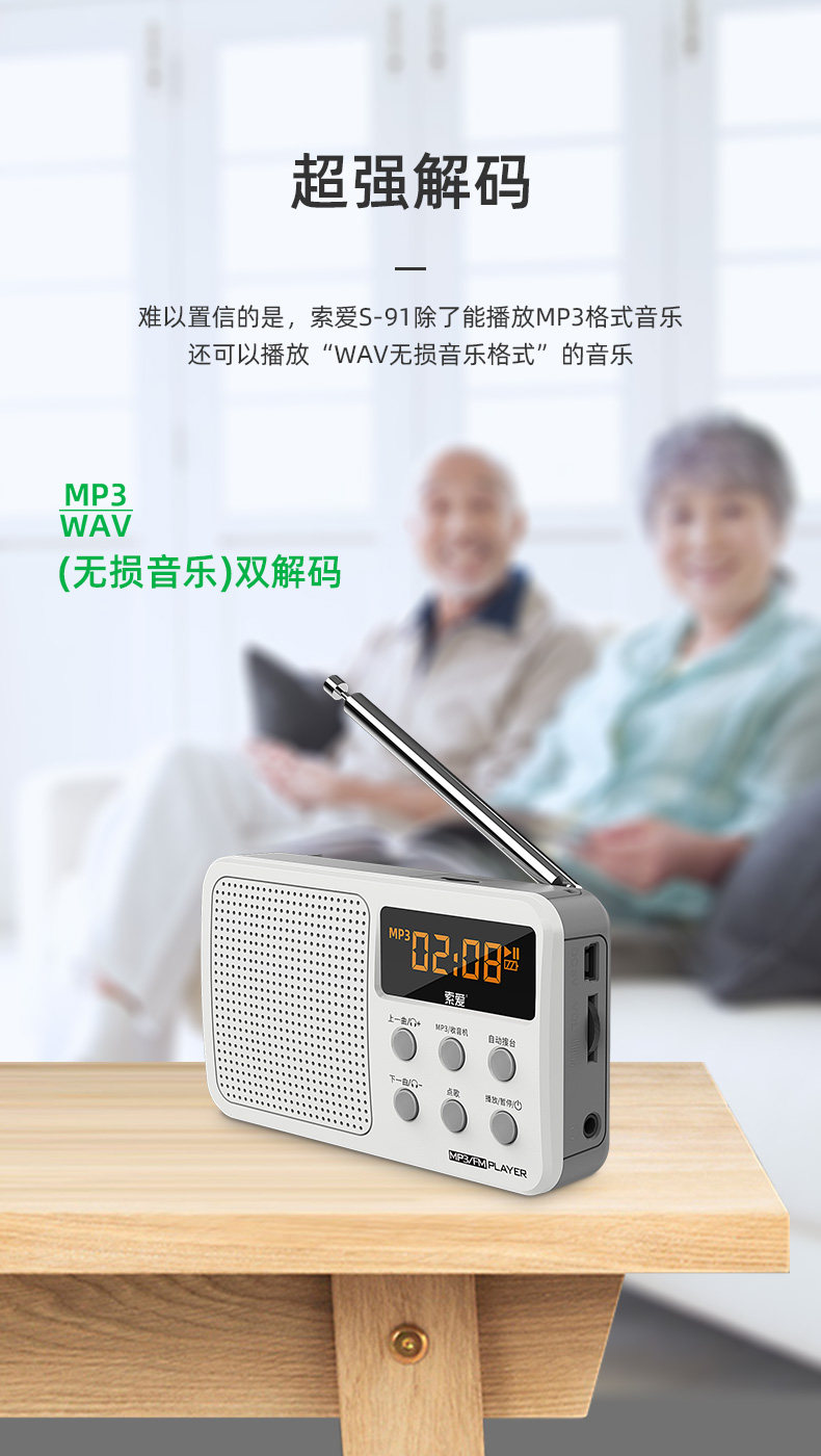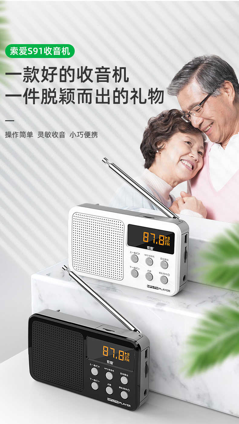索爱 S91 Radotidal New Portable Oldably Player может вставить зарядку для подключения U -карты с небольшой полупроводнической музыкой, слушая песни, слушающие драму.