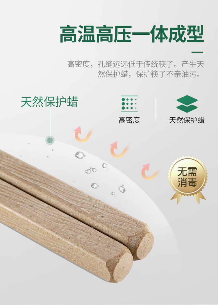 Американская раковина, палочки для рисовых ракушков, плесень, анти -скользящие палочки для дома с высоким содержанием посуды 5 двойных/10 пар натуральной ноты плесени