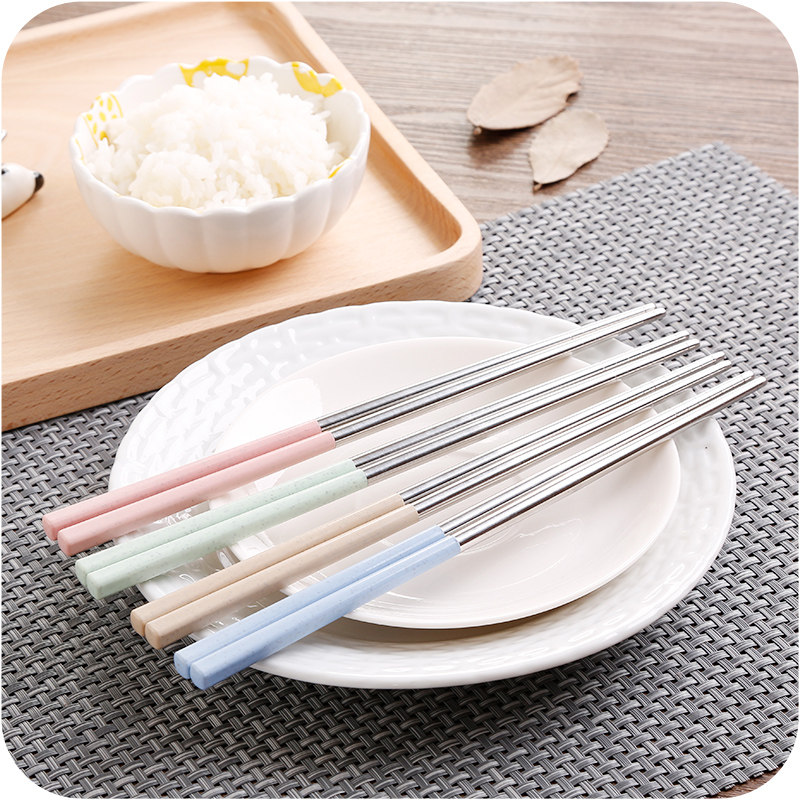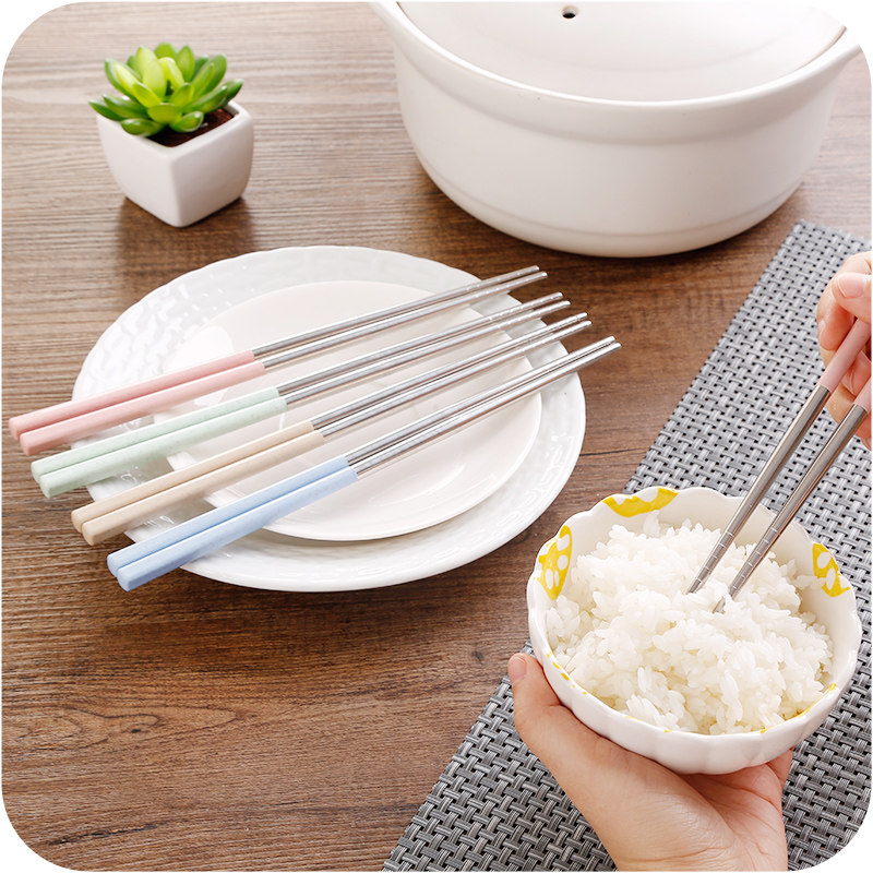 Палочки для еды из нержавеющей стали, металлический детский японский корейский нескользящий комплект для взрослых, защита от ожогов, популярно в интернете