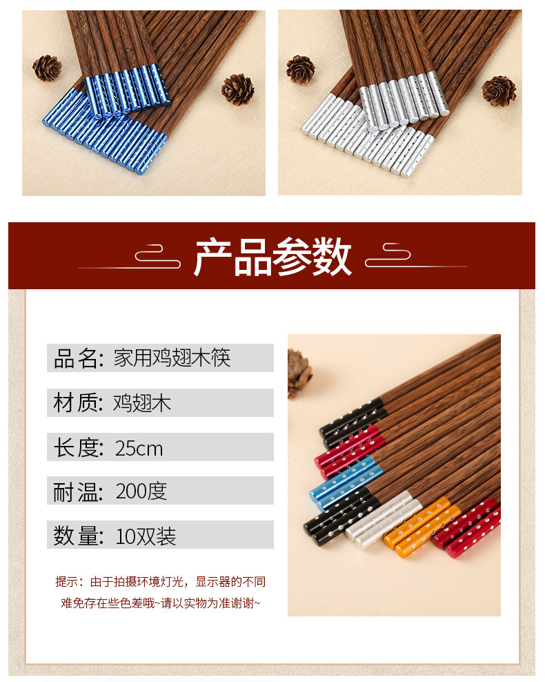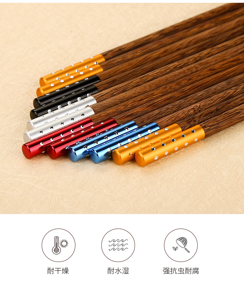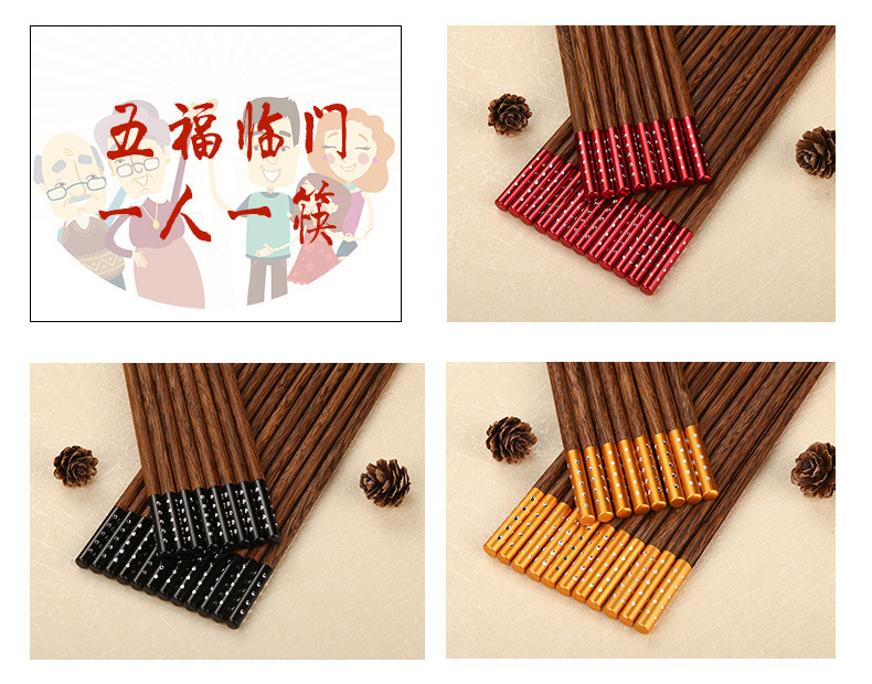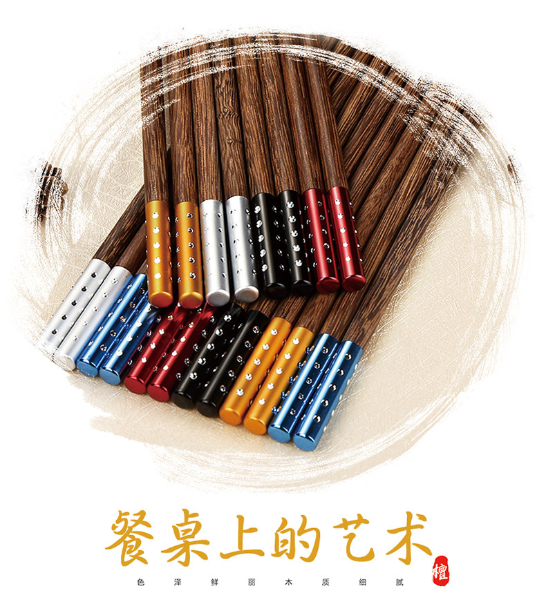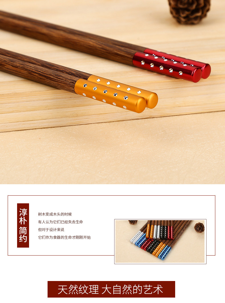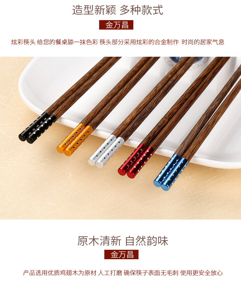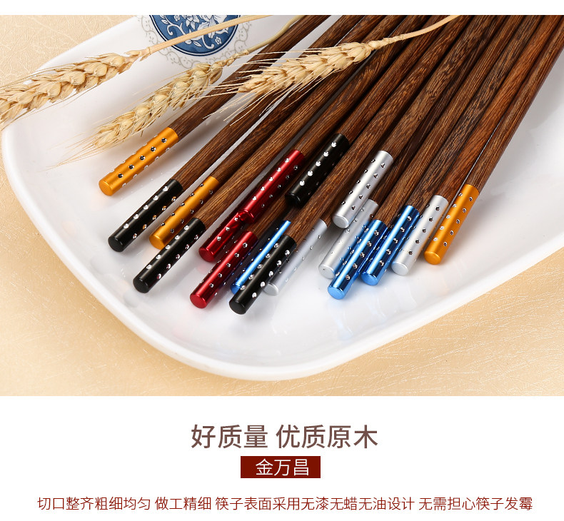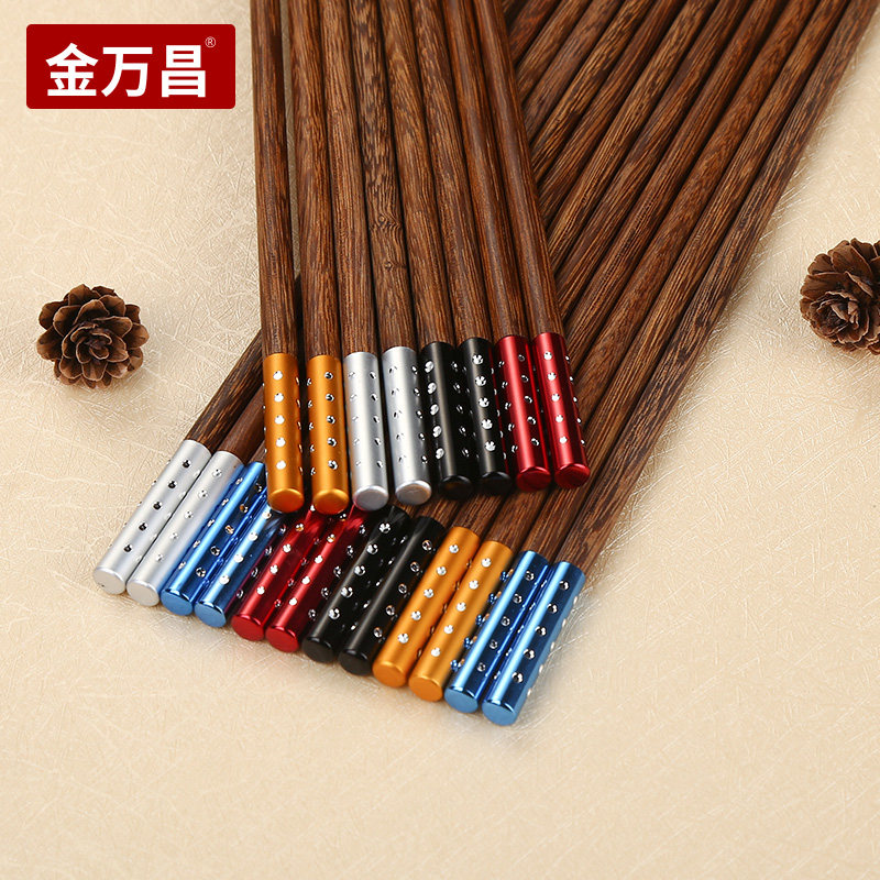 金万昌 Палочки для еды, высококлассный комплект из натурального дерева, деревянная металлическая посуда