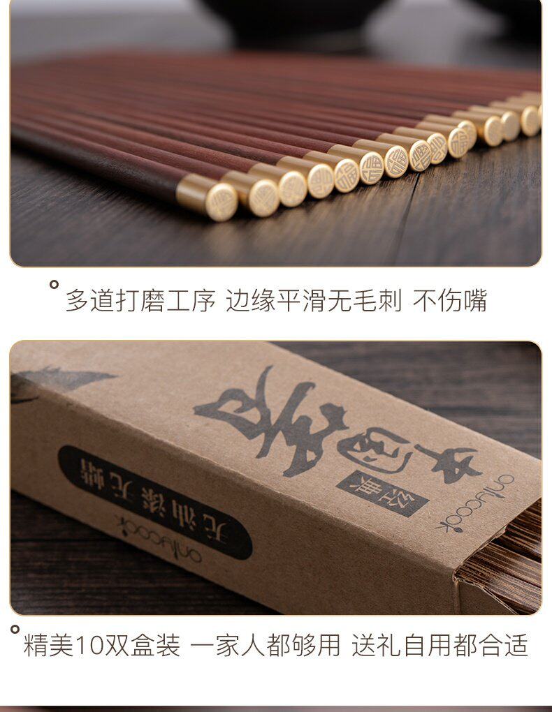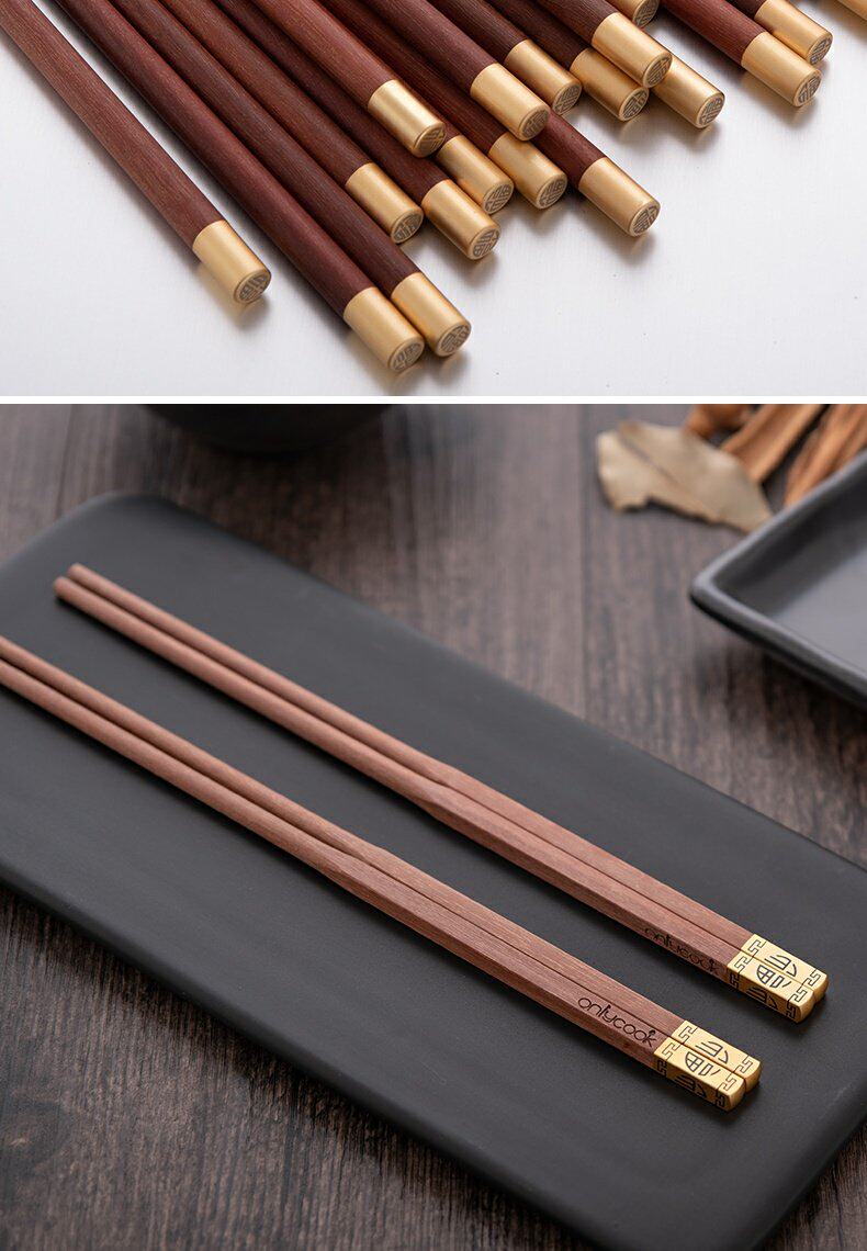 onlycook Комплект для домашнего использования из натурального дерева, японские палочки для еды, деревянная нескользящая посуда из сандалового дерева