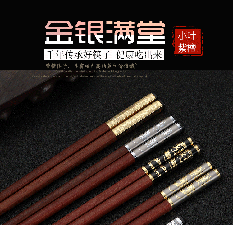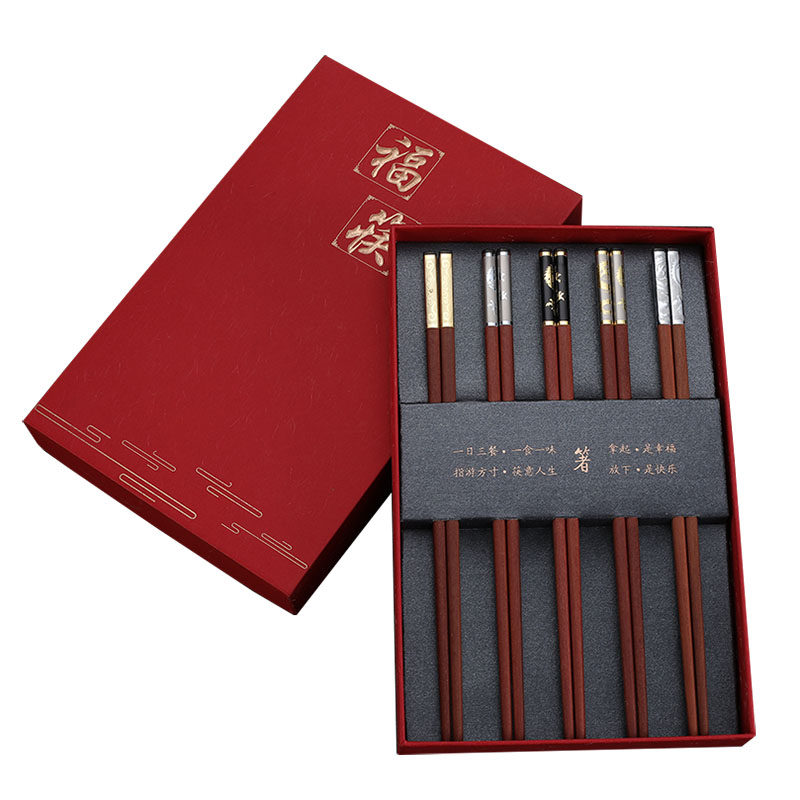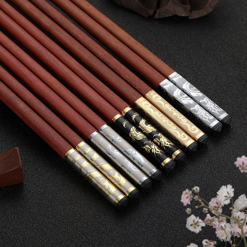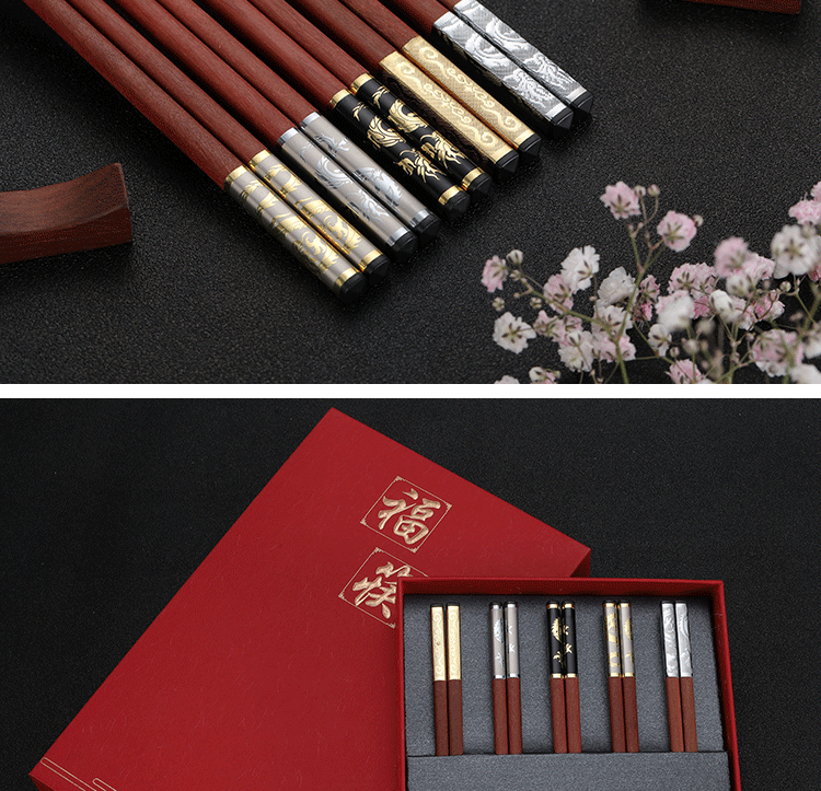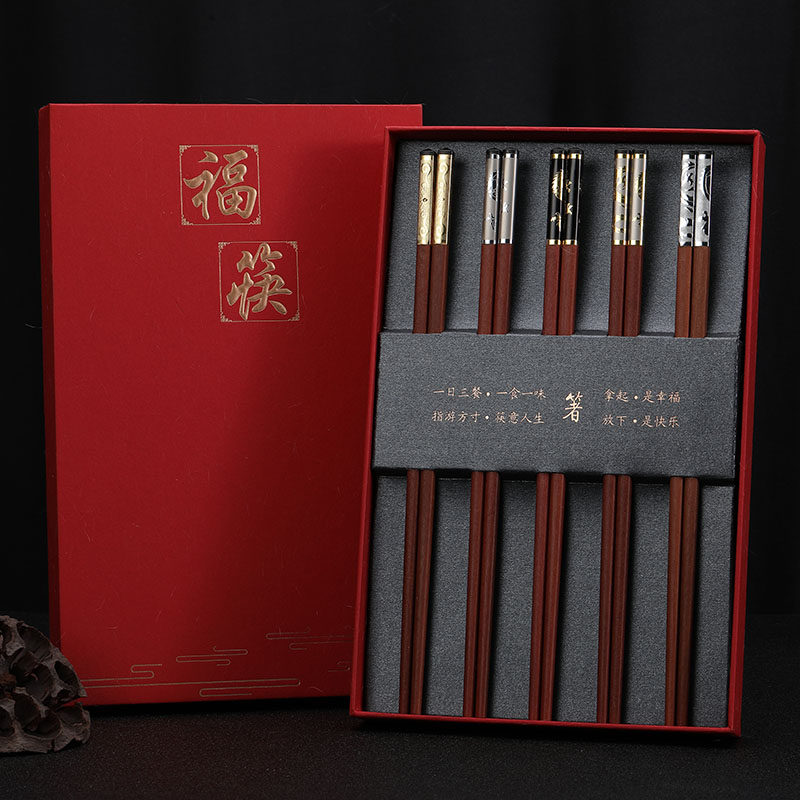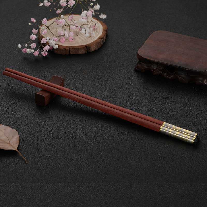 Палочки для еды из розового дерева, подарочная коробка, китайский стиль, серебро 925 пробы, золото 750 пробы
