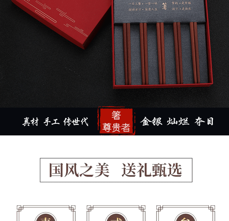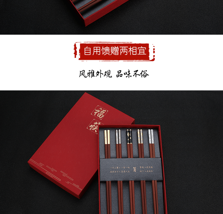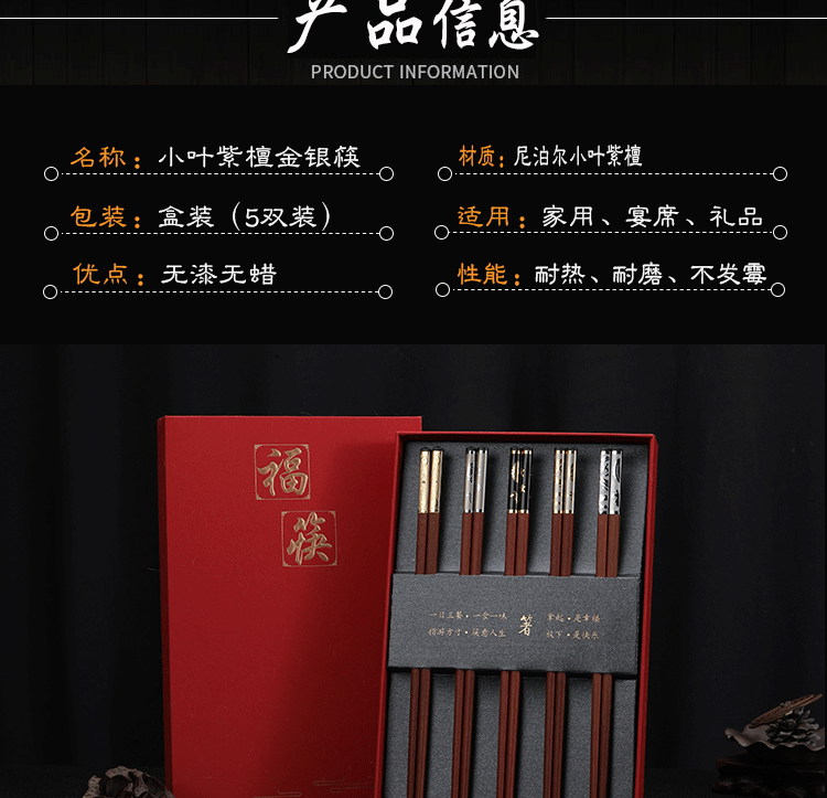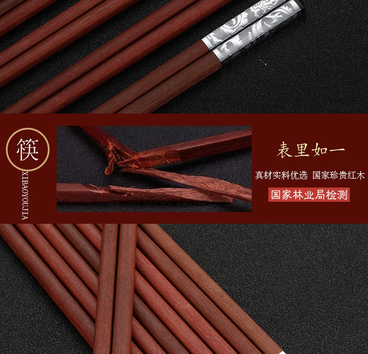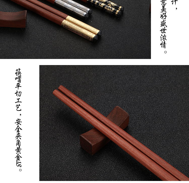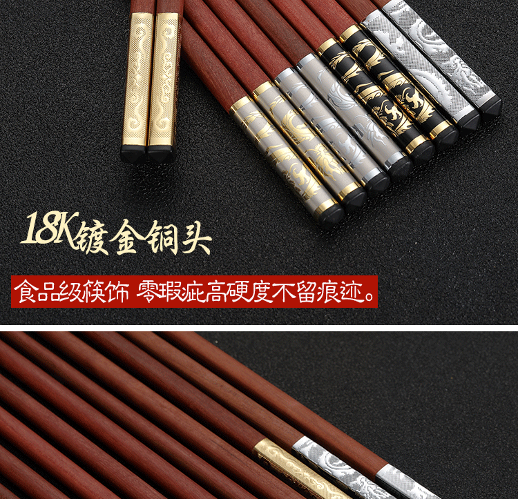 Палочки для еды из розового дерева, подарочная коробка, китайский стиль, серебро 925 пробы, золото 750 пробы