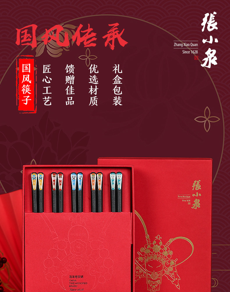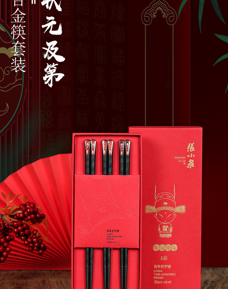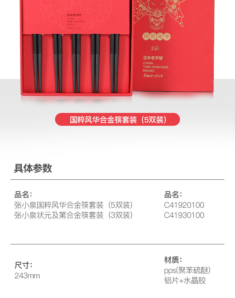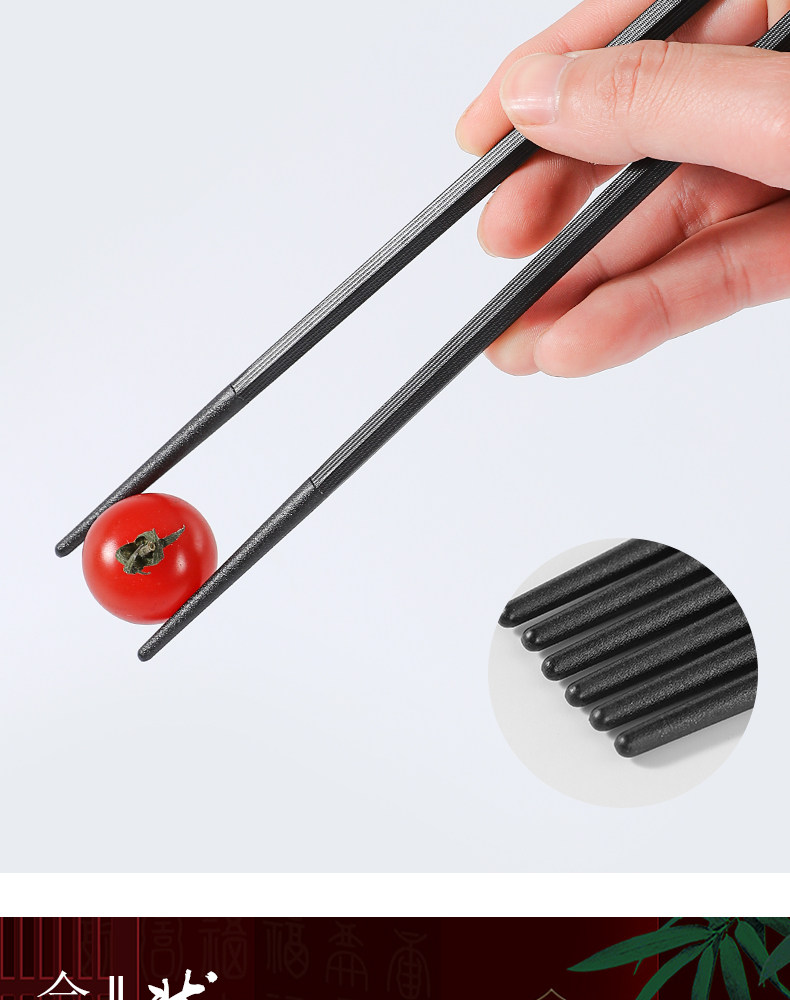 张小泉 Металлические нескользящие палочки для еды для домашнего использования из натурального дерева, посуда