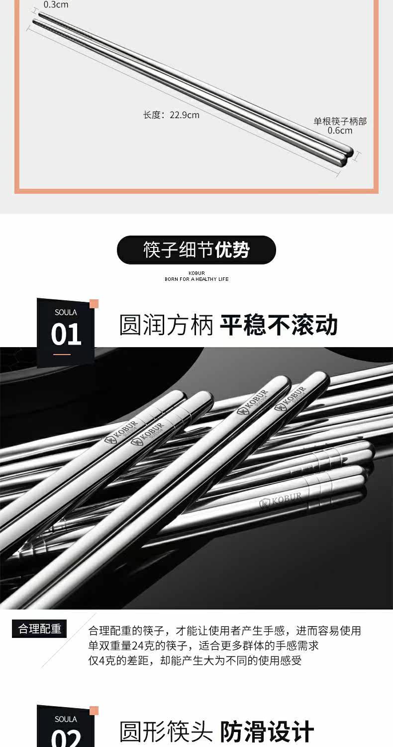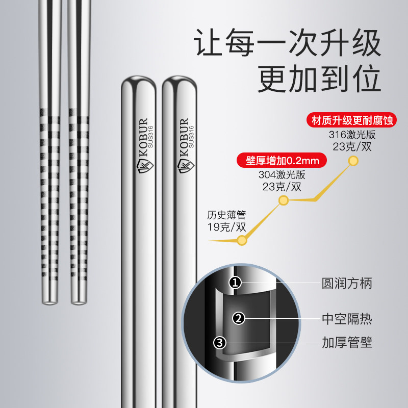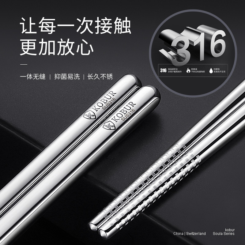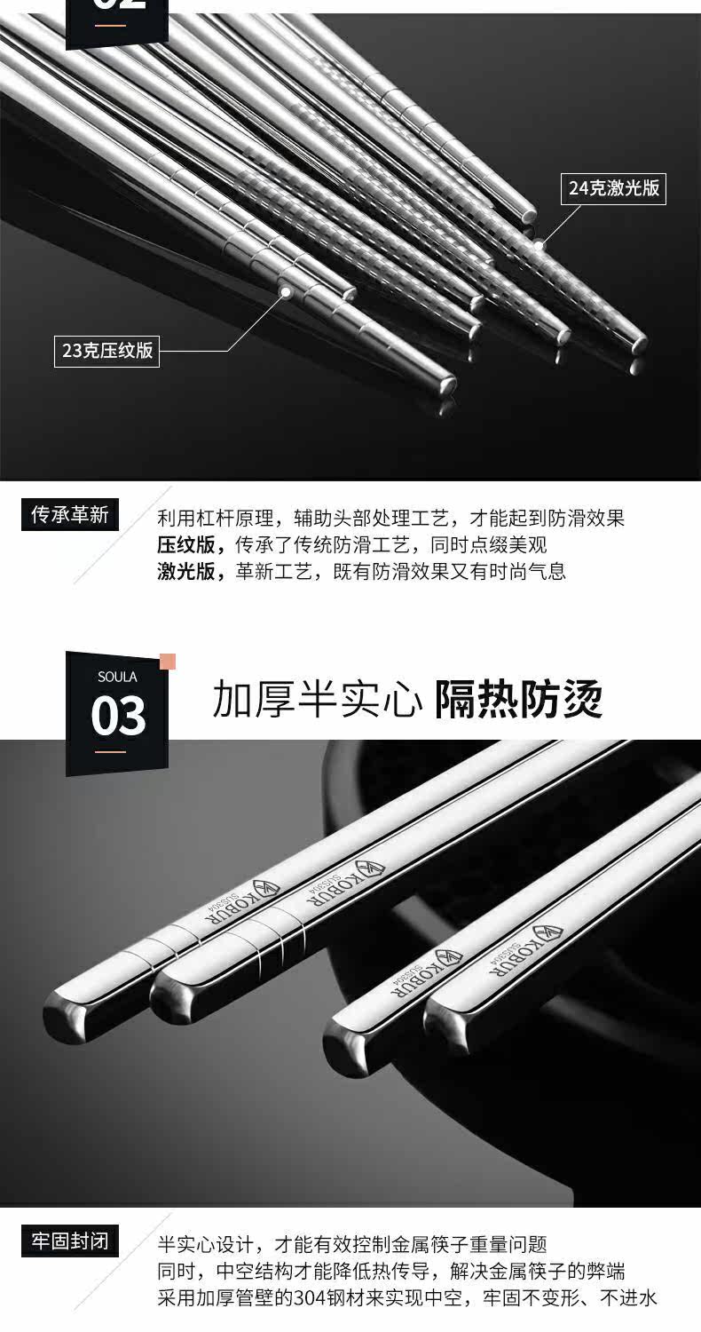 Нескользящие высококлассные палочки для еды из нержавеющей стали, металлический комплект