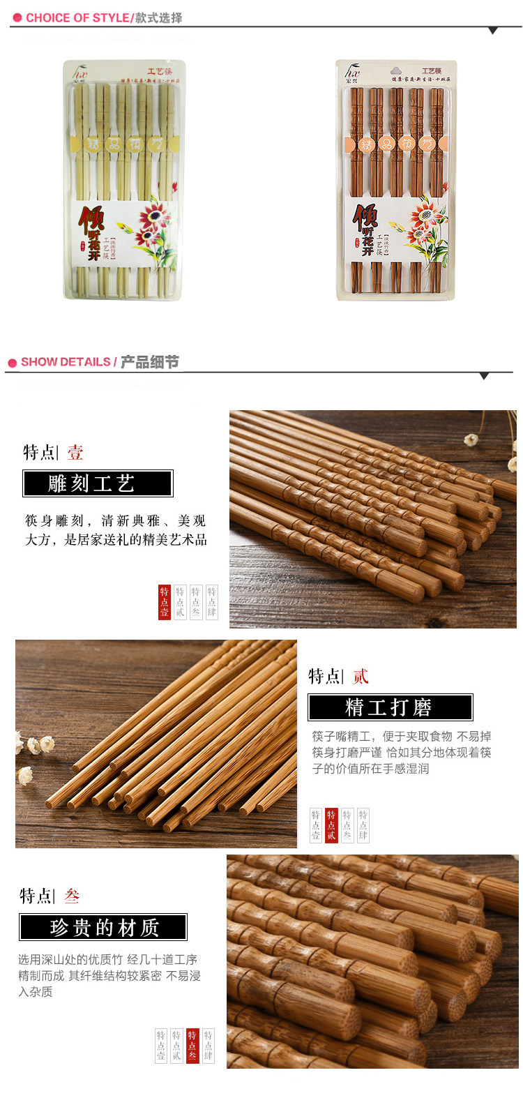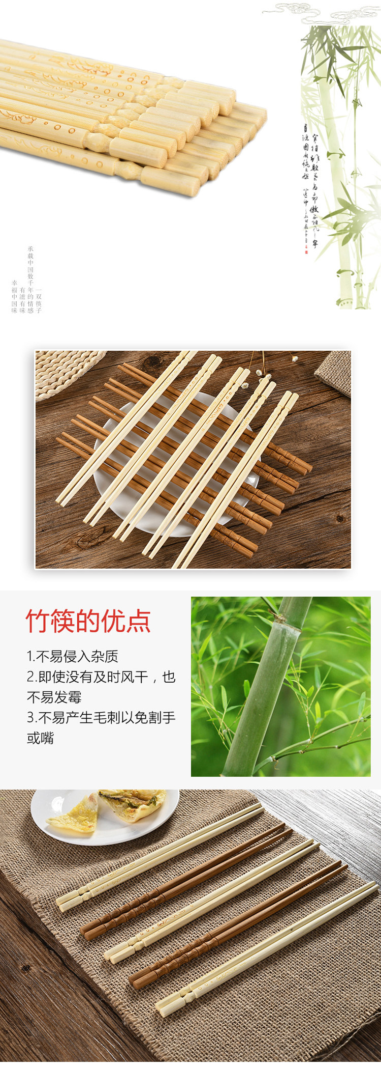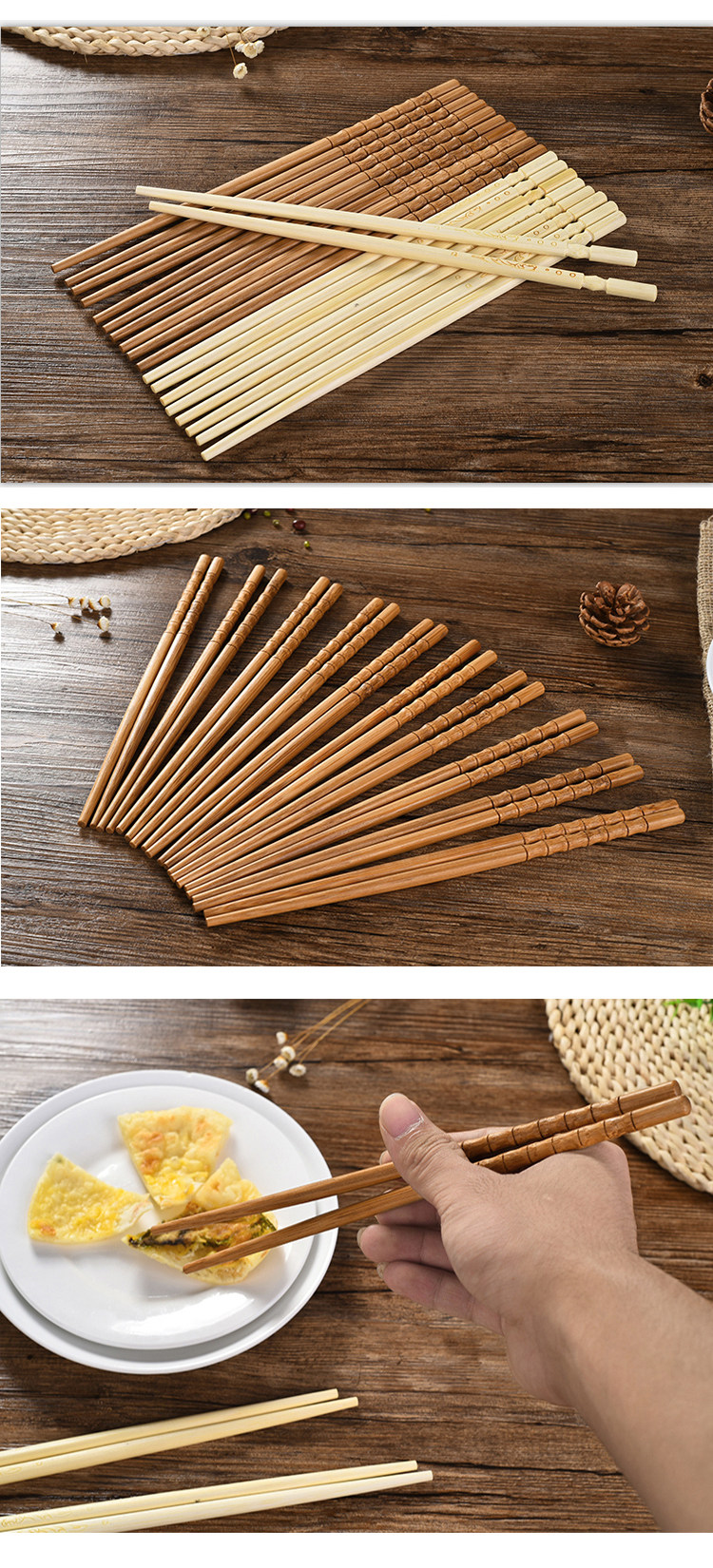 Домашнее сплошное дерево бамбуковые палочки для дома 10 пары набор формованных бамбука высокий температурный сопротивление натуральные безваленные восковые посуду бамбуковые палочки