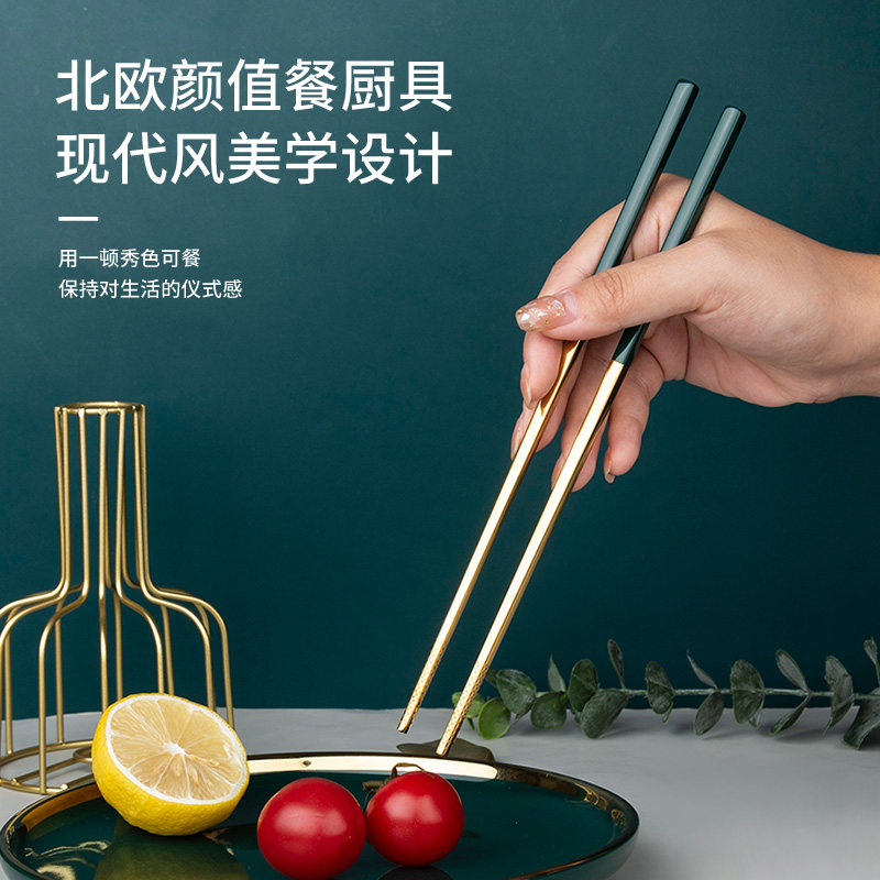 Палочки для еды из нержавеющей стали, нескользящая портативная посуда для домашнего использования, скандинавский стиль