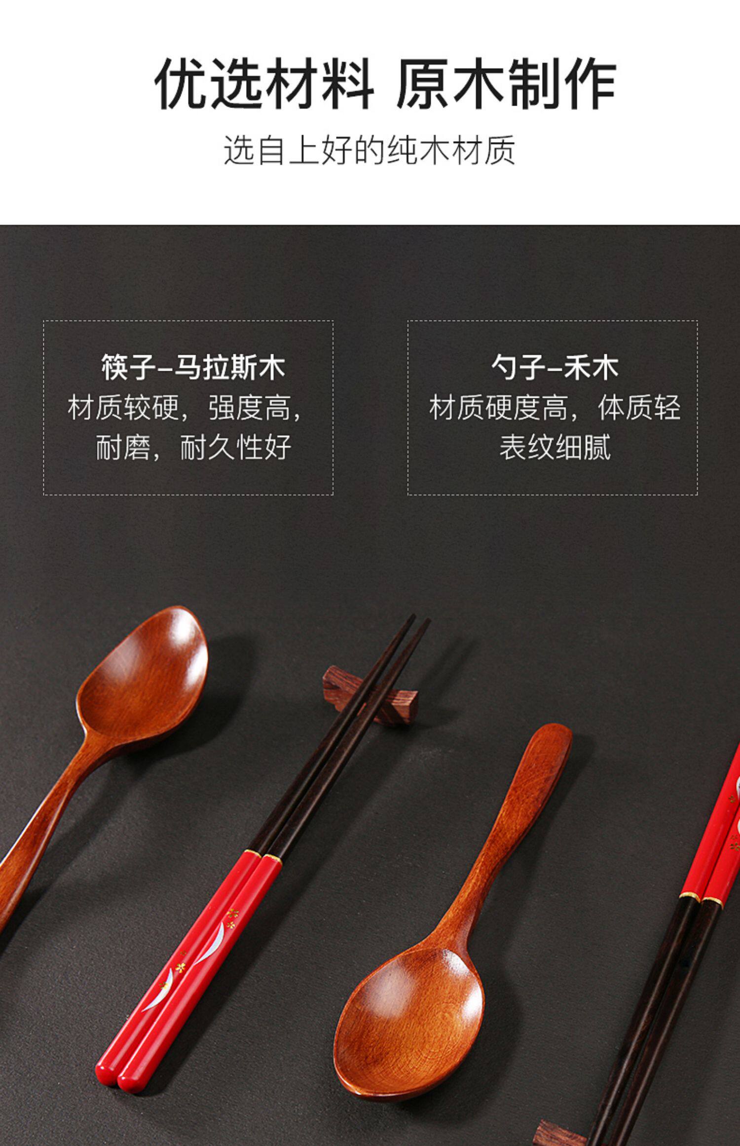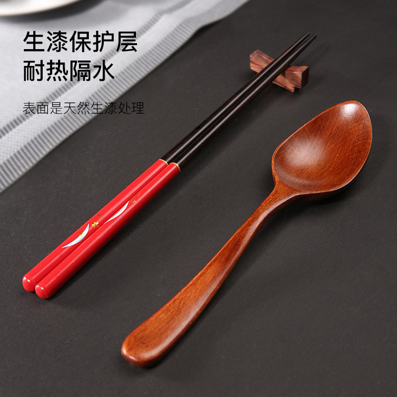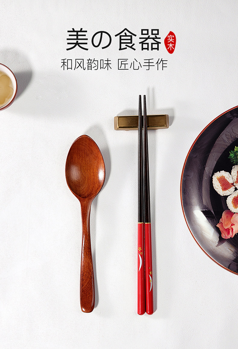Высококачественные нескользящие палочки для еды, японская ложка для домашнего использования из натурального дерева, комплект