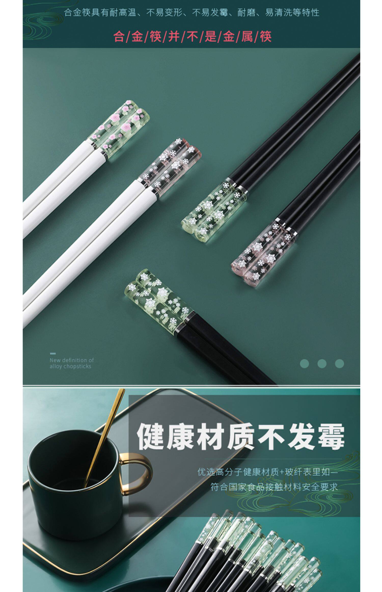 Янтарные металлические нескользящие японские антибактериальные палочки для еды, популярно в интернете