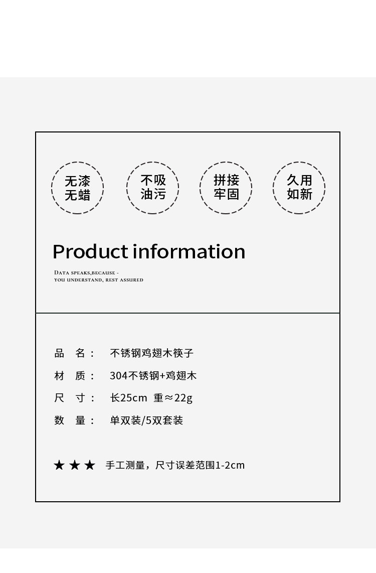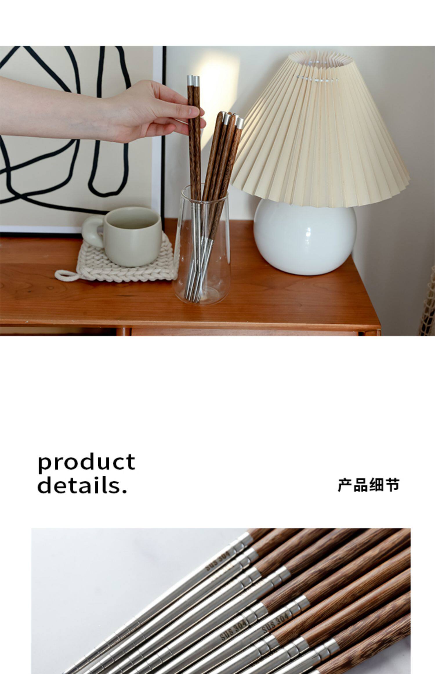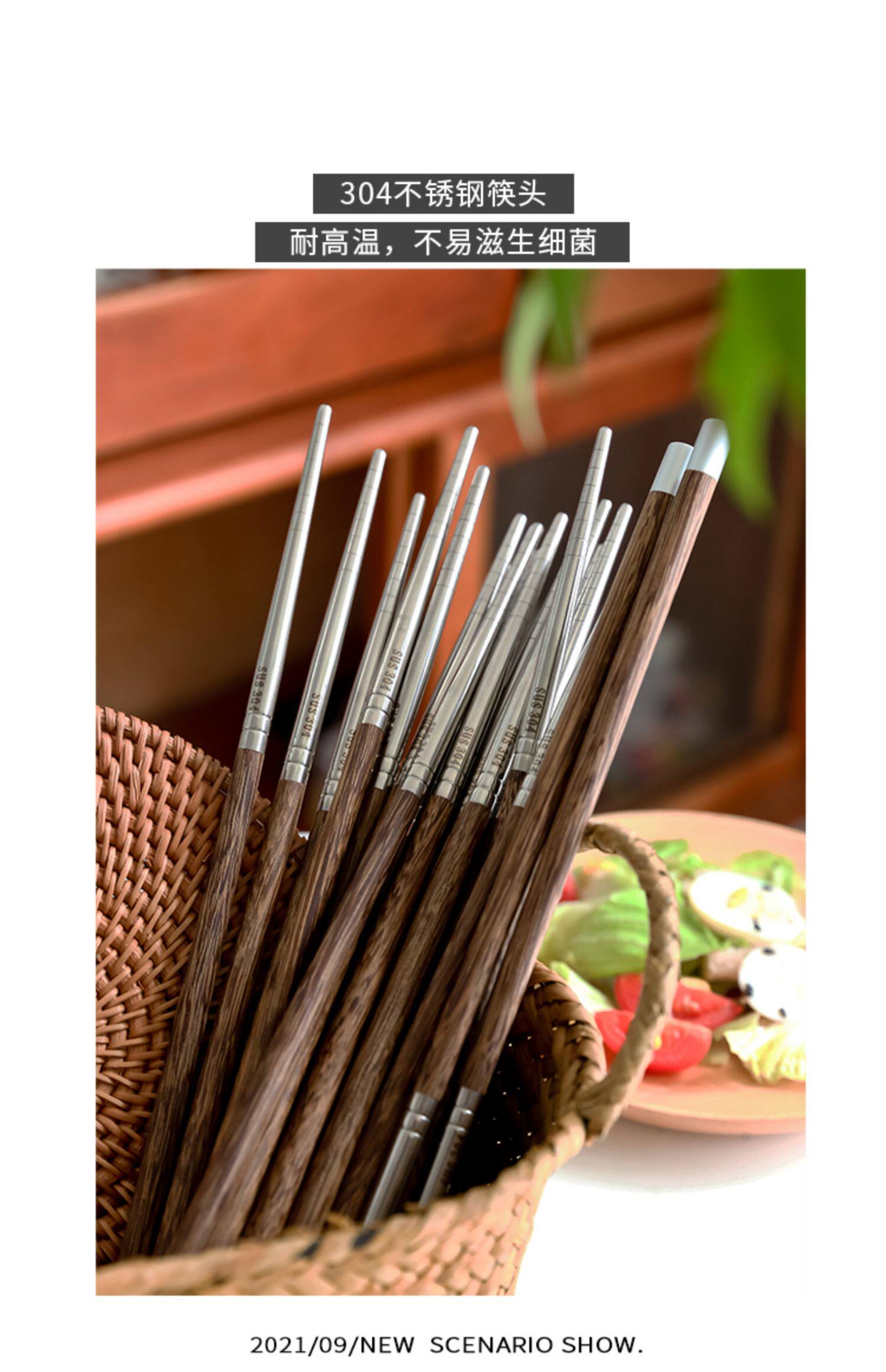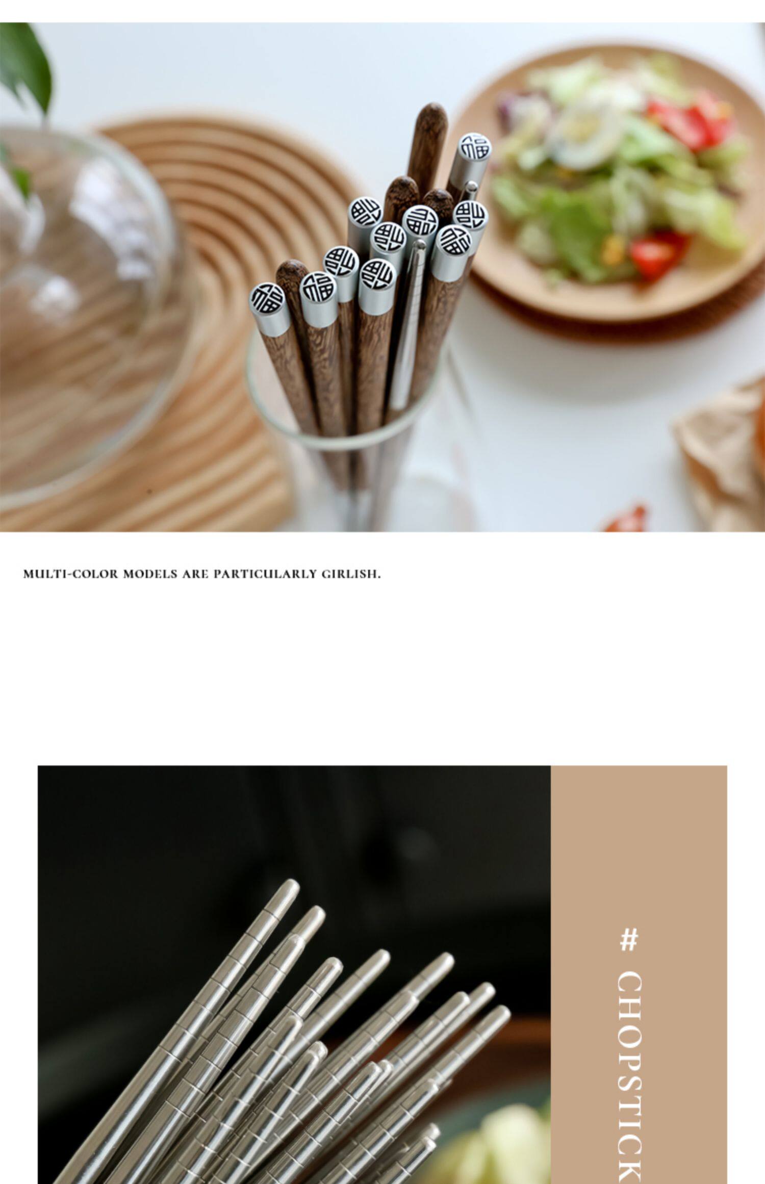 Китайская стиль благословения палочки для оправлений с высоким уровнем курицы куриные крылышки древесина 304 Семейство палочки из нержавеющей стали 2021 Новый домашний невидная краска воск
