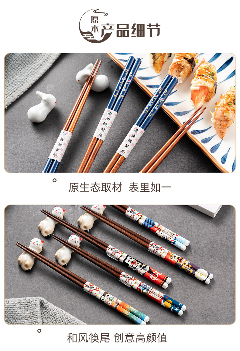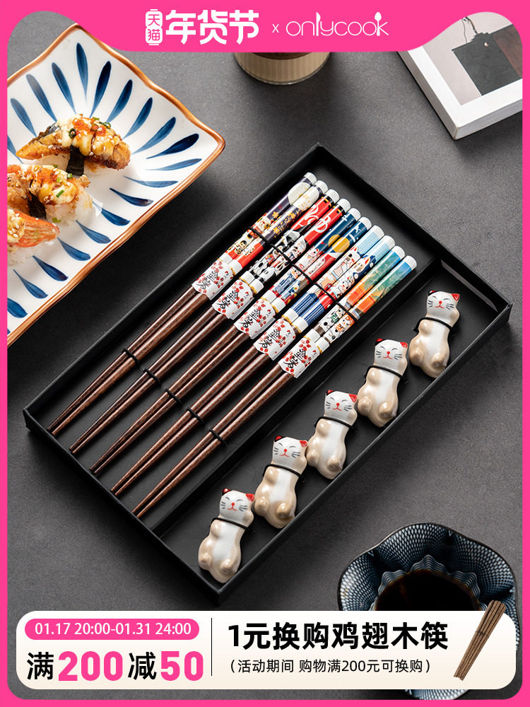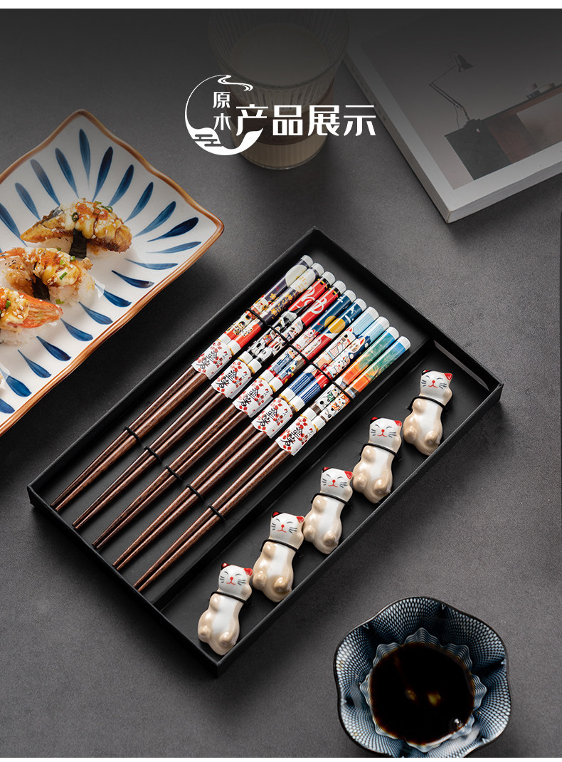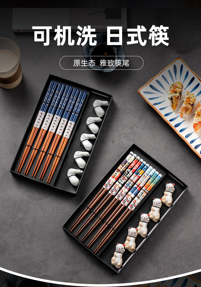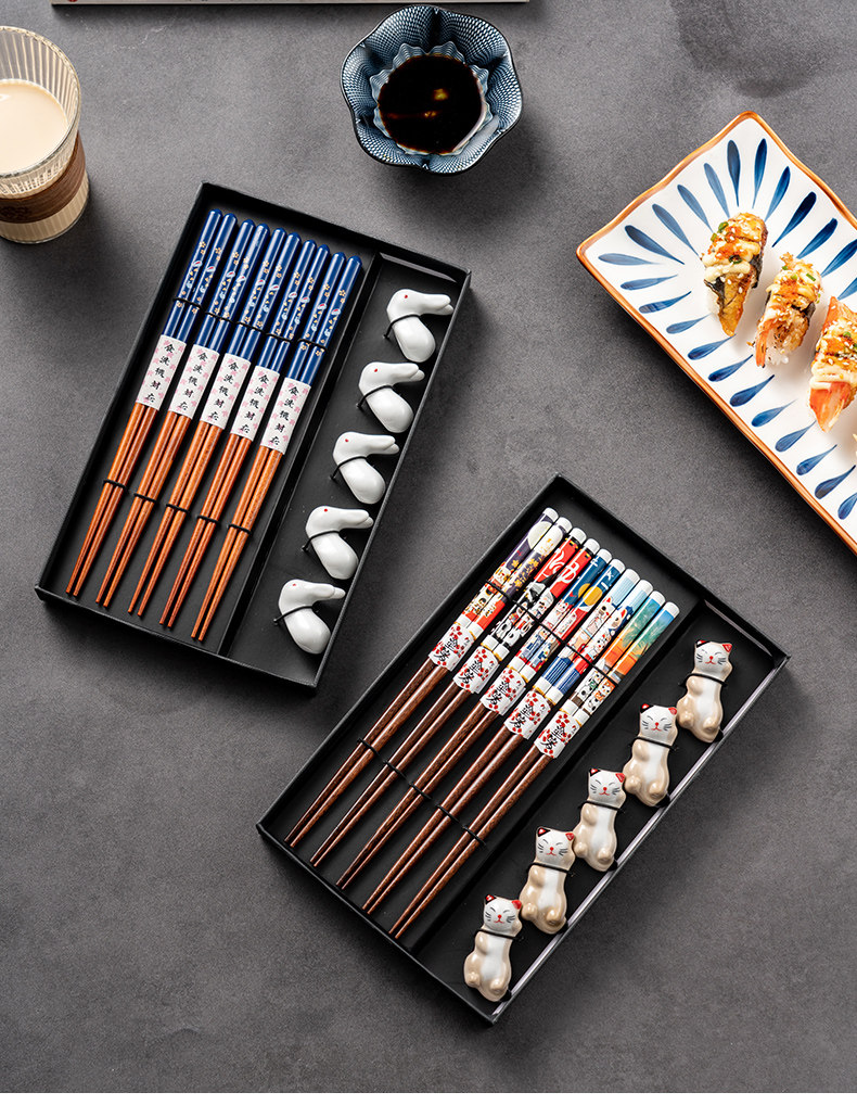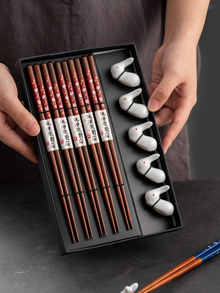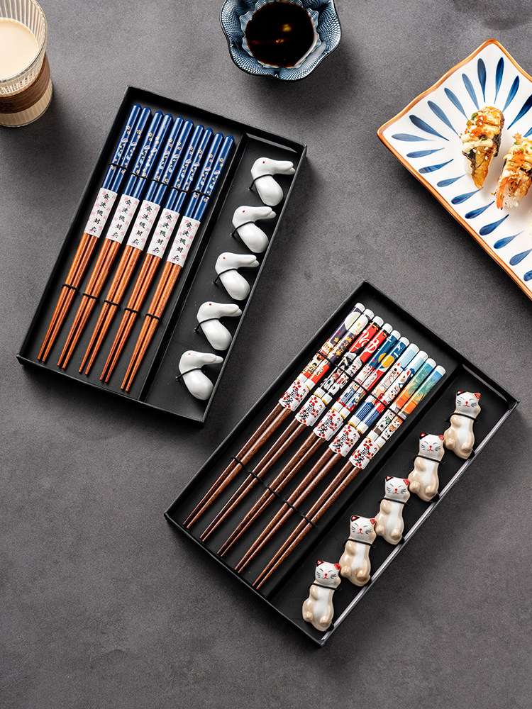 Японские палочки для еды, домашний комплект для домашнего использования, нескользящая посуда из натурального дерева, подарочная коробка
