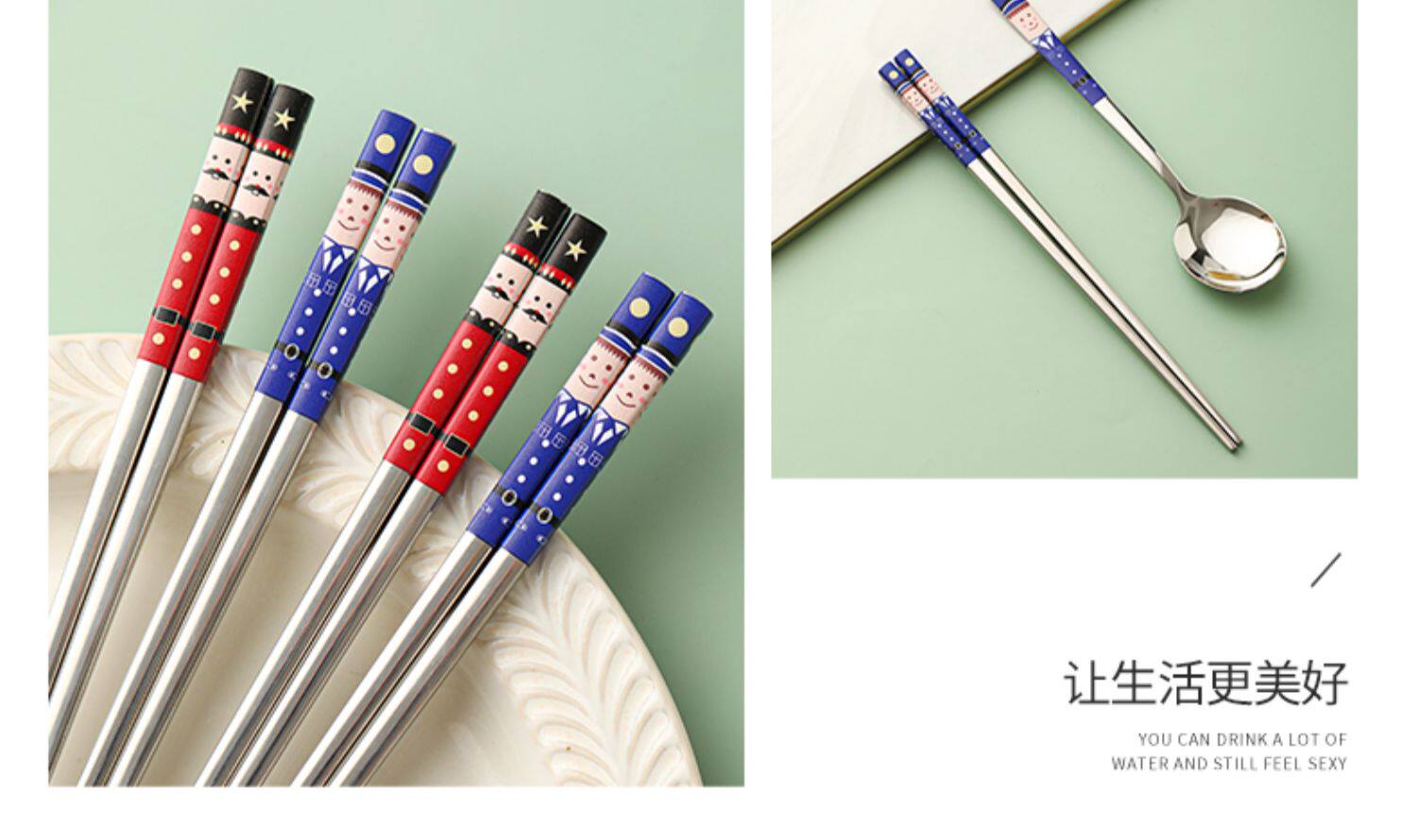 Комплект из нержавеющей стали, высококлассные металлические антибактериальные палочки для еды