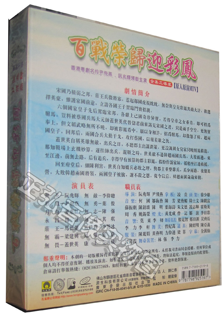 Подлинный традиционный костюм Кантонская оперная байская битва за приветствие Cai Feng Yin Feiyin Yin Feiyan Ruan Zhaohui 3VCD Кантонская кантонская кантонская опера.