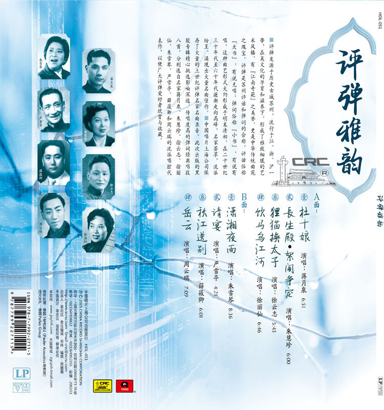 Компания China Record Shanghai сохранила большое количество записей знаменитой музыки Пинтань прошлого века.В выпущенный на этот раз виниловый альбом тщательно отобраны восемь классических арий Танчи, которые имеют далеко идущее влияние и широко исполняются.Шедевры жанрового пения известных исполнителей Цзян Юэцюань, Чжу Хуэйчжэнь, Сюй Юньчжи, Сюй Лисянь, Чжу Сюэцинь, Янь Сюэтин, Сюэ Сяоцин и Чжоу Юньжуй отобраны для оценки и коллекции любителей Пинтань.Сущность