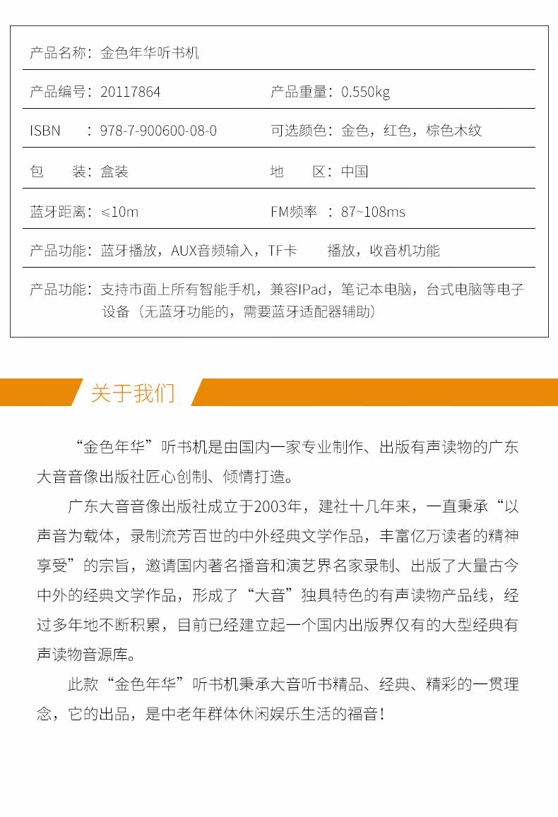 Эта книга по прослушиванию хороша, полная, красивая и чистая звук. Это выбор для пожилых людей для отдыха и развлечений!