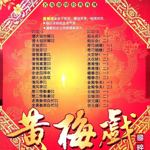 Опера Хуанмэй, Квинтэссенция китайской культуры, Ученый номер один, Павильон Цинфэн, Странный брак, Борьба за мужа в Золотом дворце, DVD «Лодочный клуб»