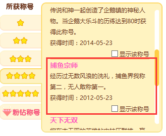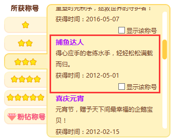 QQ PET Happy Fishing Port Training Training Twiten Tusting Fishing Frown Star Title