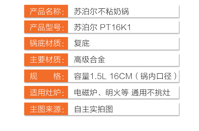 SUPOL Дополнительный пищевой горшок, не -стабильный горшок, небольшая скова для вареного горячей молочной плиты, электромагнитная плита, приготовленная лапша 16см.