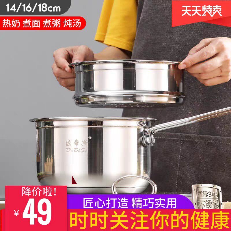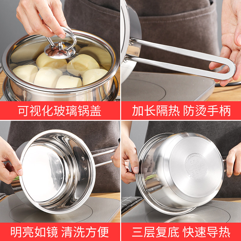 Молочный горшок, не -стабильный горшок 304 из нержавеющей стали горячее молоко, вареное мгновенное лапша детское питание Дополнительное питание, небольшая кипящая суп Электромагнитная плита Универсальная