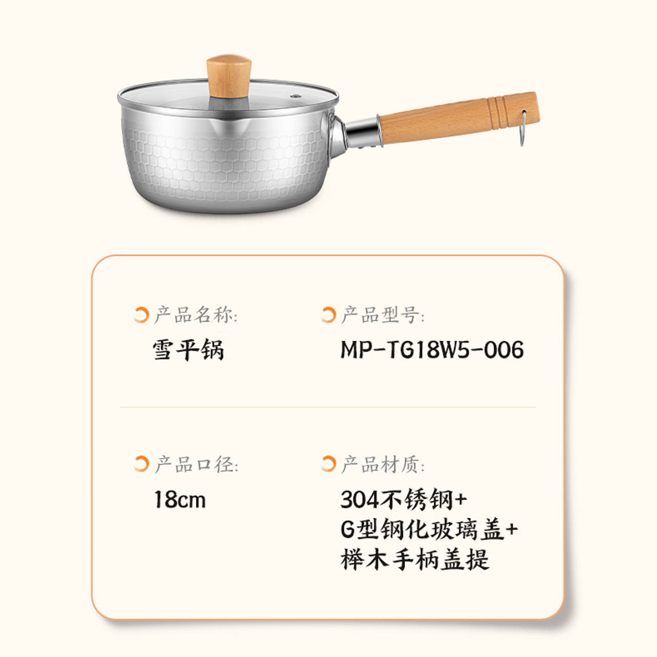 Mei Zhebao японская в стиле снегопала из нержавеющей стали из нержавеющей стали маленькая молочная кастрюль горшок с лапшой.