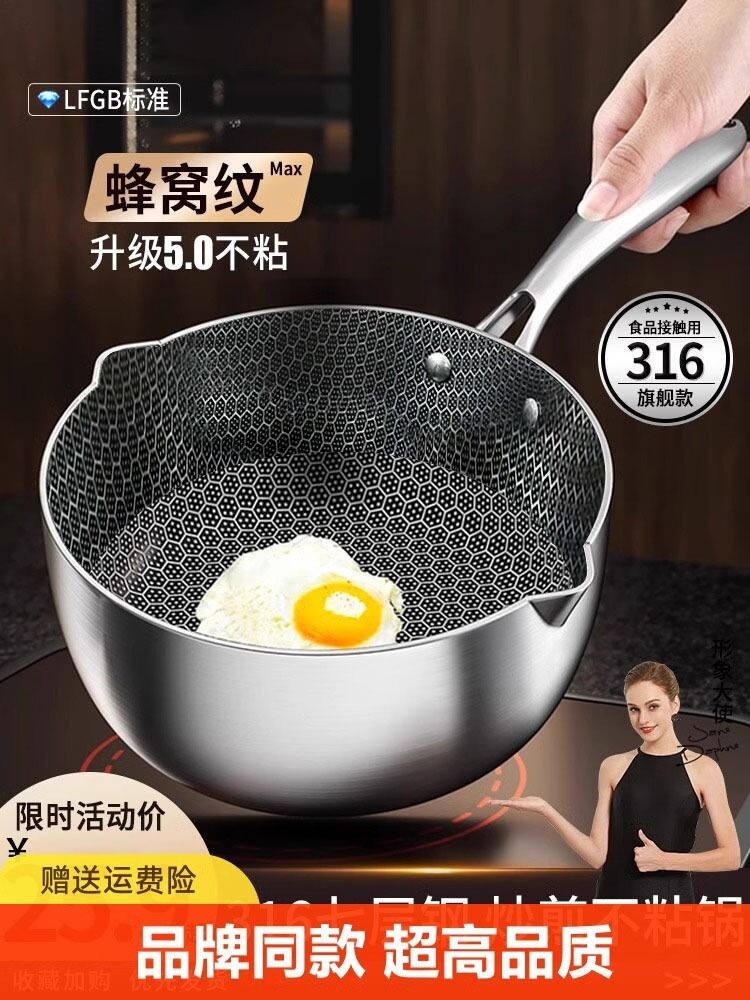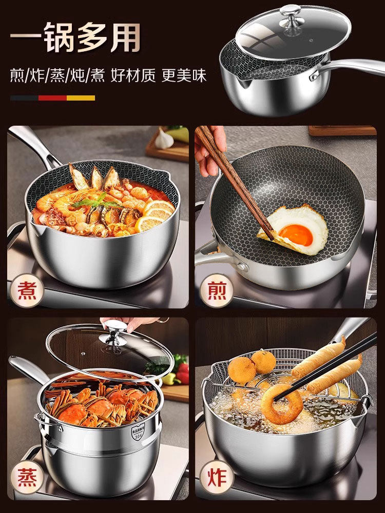 Японская стиль 316L из нержавеющей стали Скюсовая горшка горшок с молочным горшком Дополнительная продуктовая плита без покрытия домохозяйства, не стабильная лапша, кот
