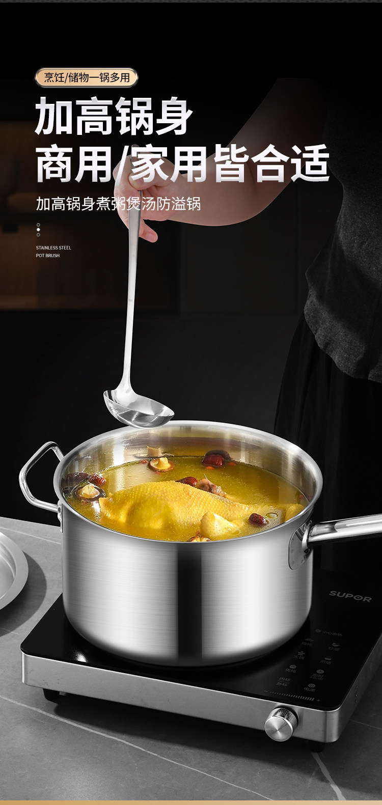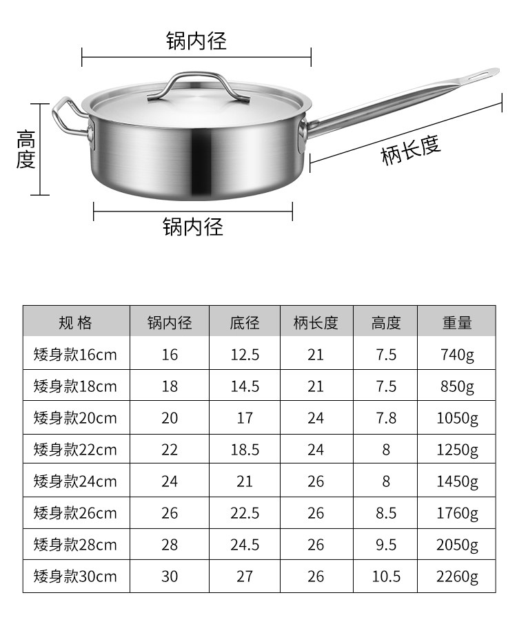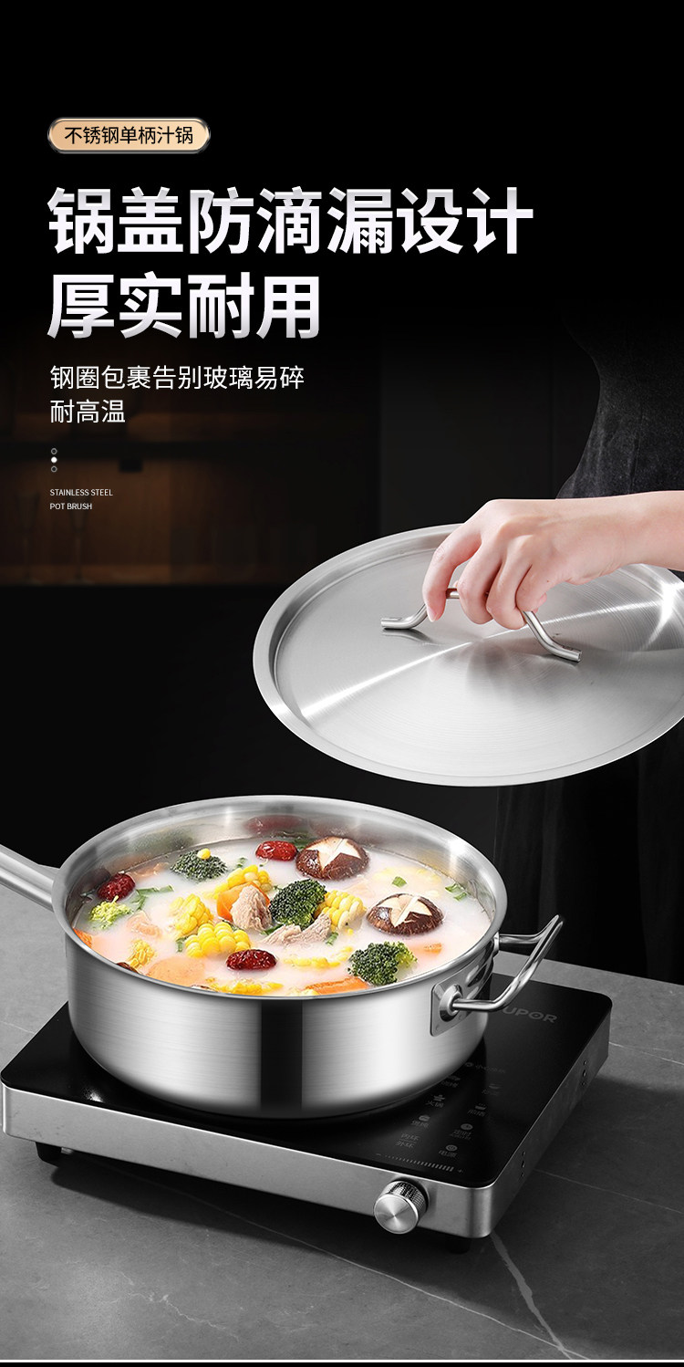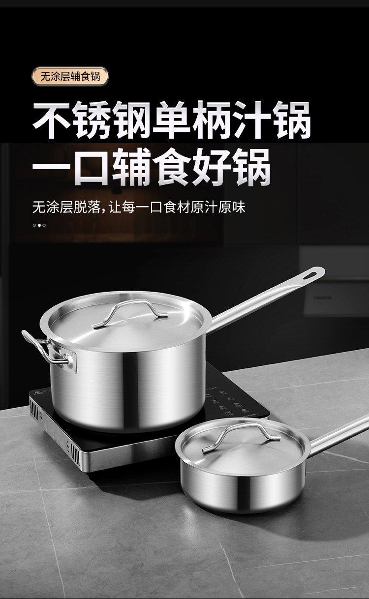 Кастрюля для сока с одной ручкой из нержавеющей стали 304 с ламинированным дном, кастрюля для молока, кастрюля для выпечки, кастрюля для острого мяса, кастрюля для супа с антипригарным покрытием, индукционная плита