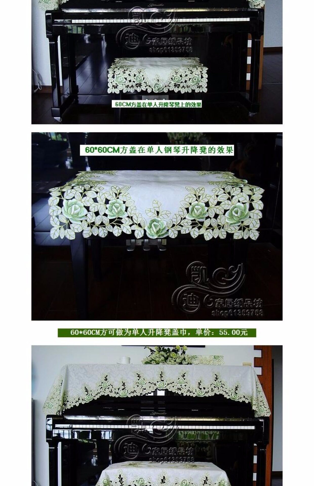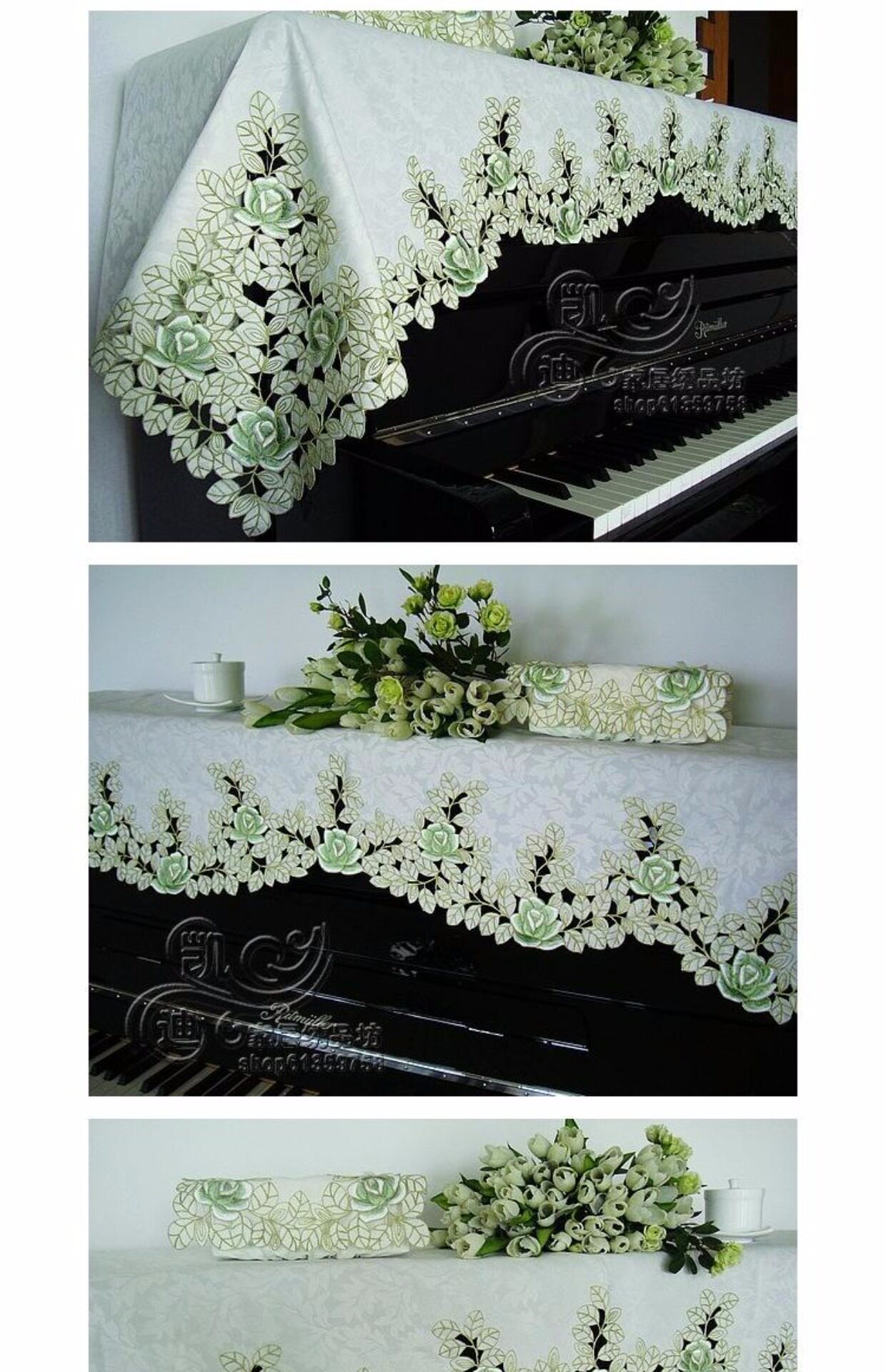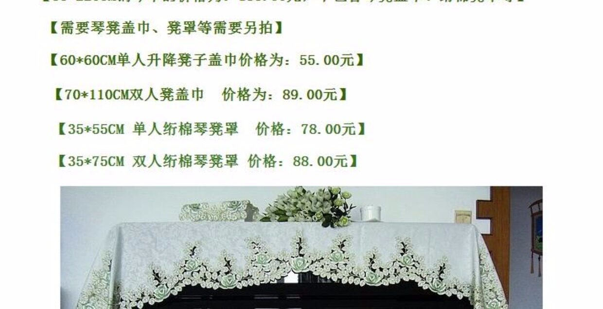 Ткань, пианино, зеленая пылезащитная крышка, с вышивкой