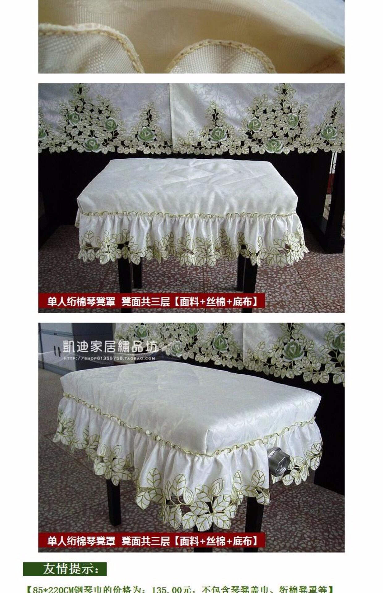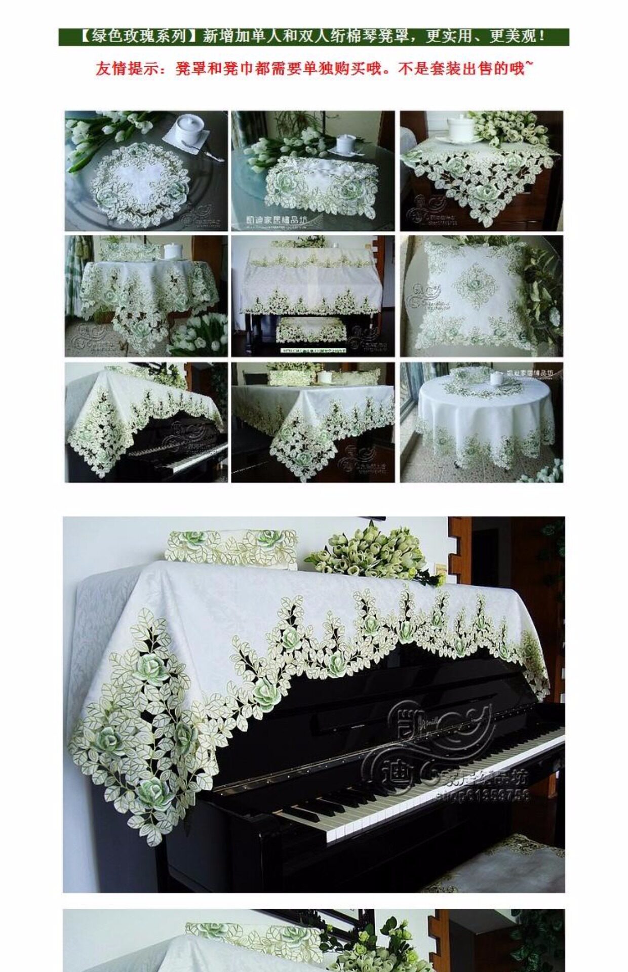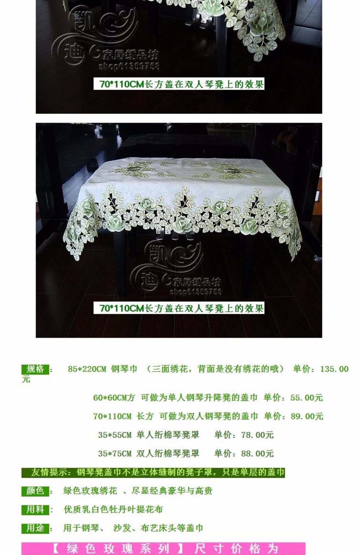Ткань, пианино, зеленая пылезащитная крышка, с вышивкой
