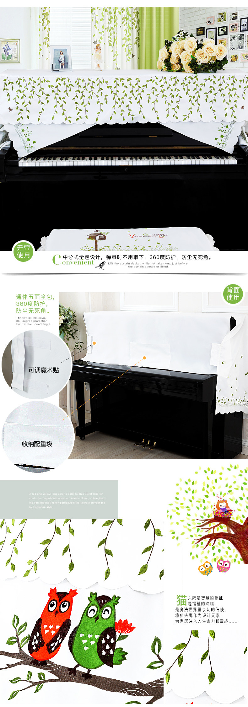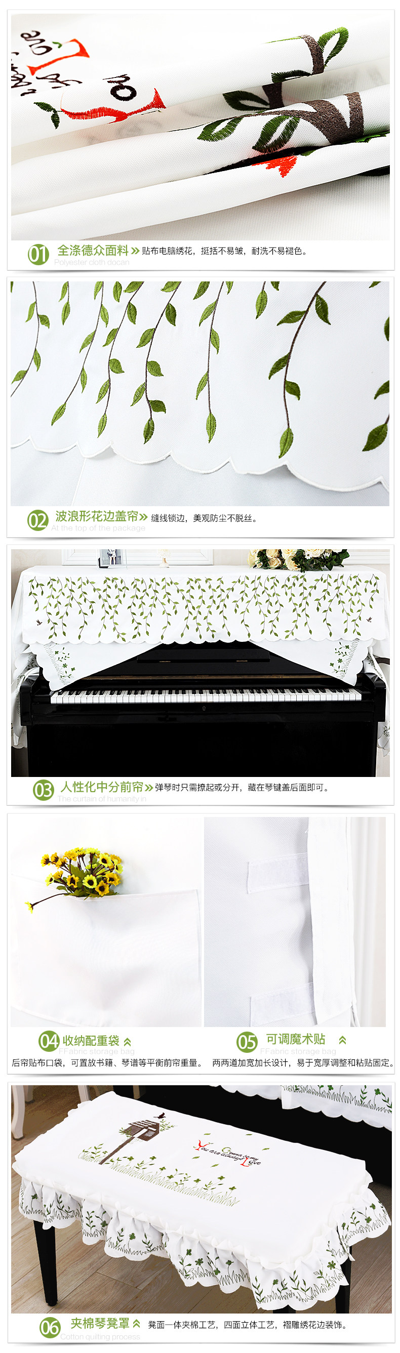 Пианино, пылезащитная ткань, с вышивкой, в корейском стиле