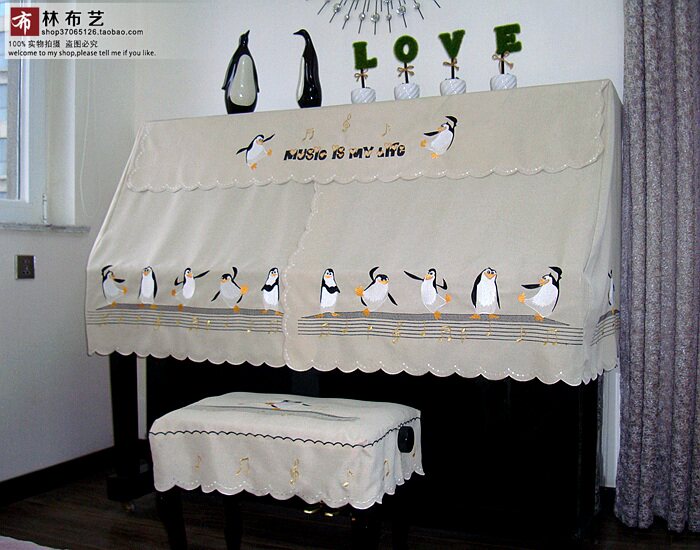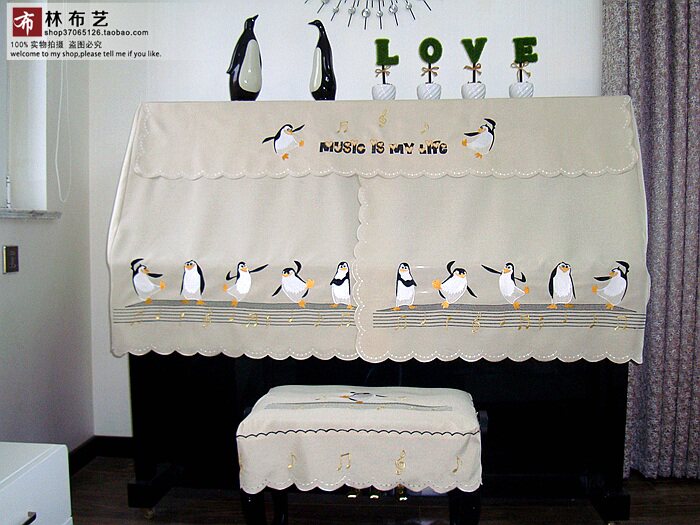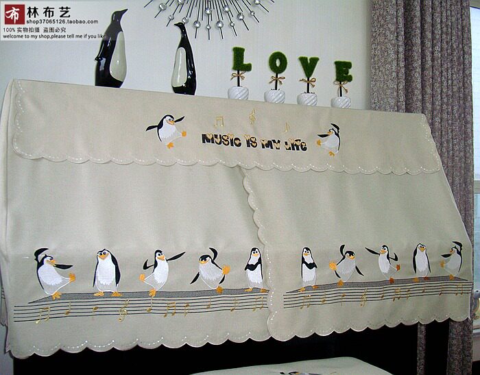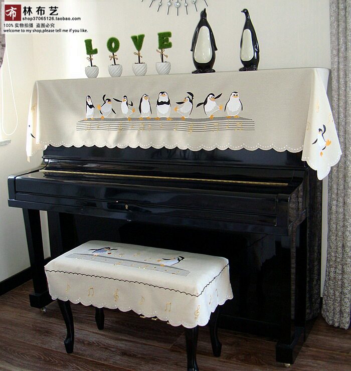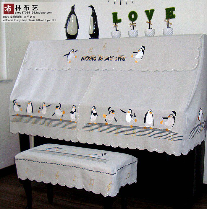 Современное пианино, пылезащитная ткань, простой и элегантный дизайн, с вышивкой, пингвин