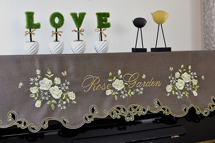 Плетно -вышитая тканевая крышка для пианино.