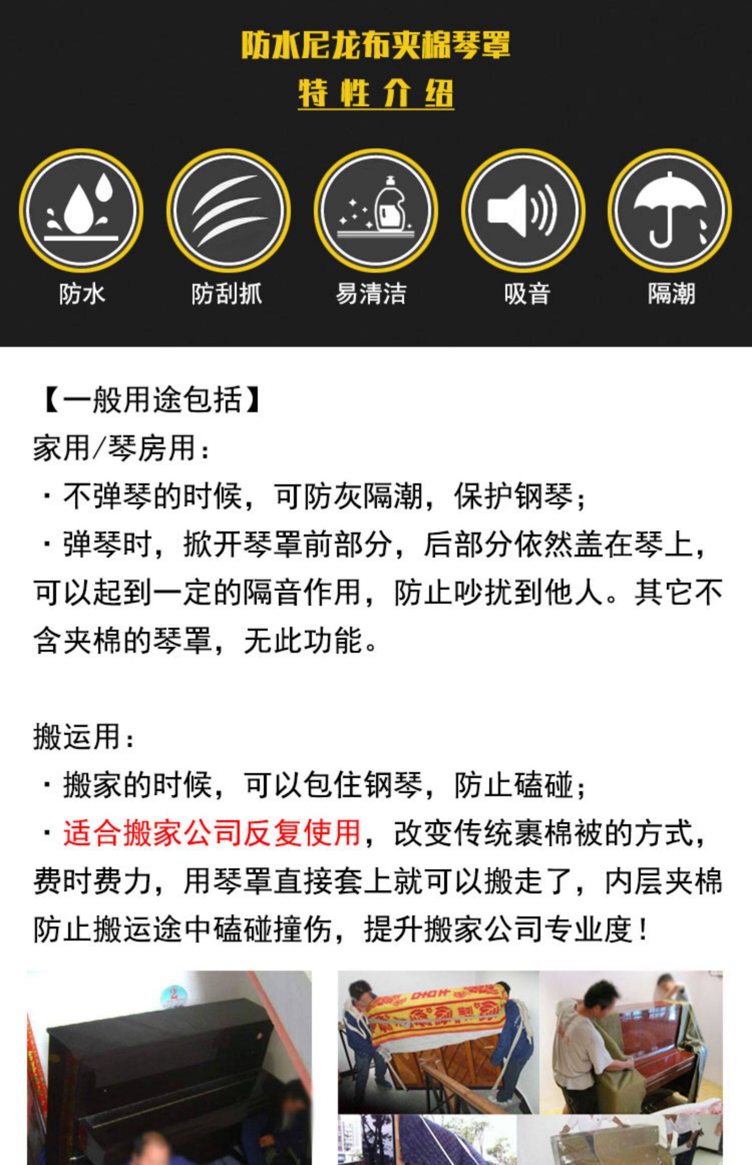 Водонепроницаемое стеганое защитное освещение для пианино для переезда, увеличенная толщина