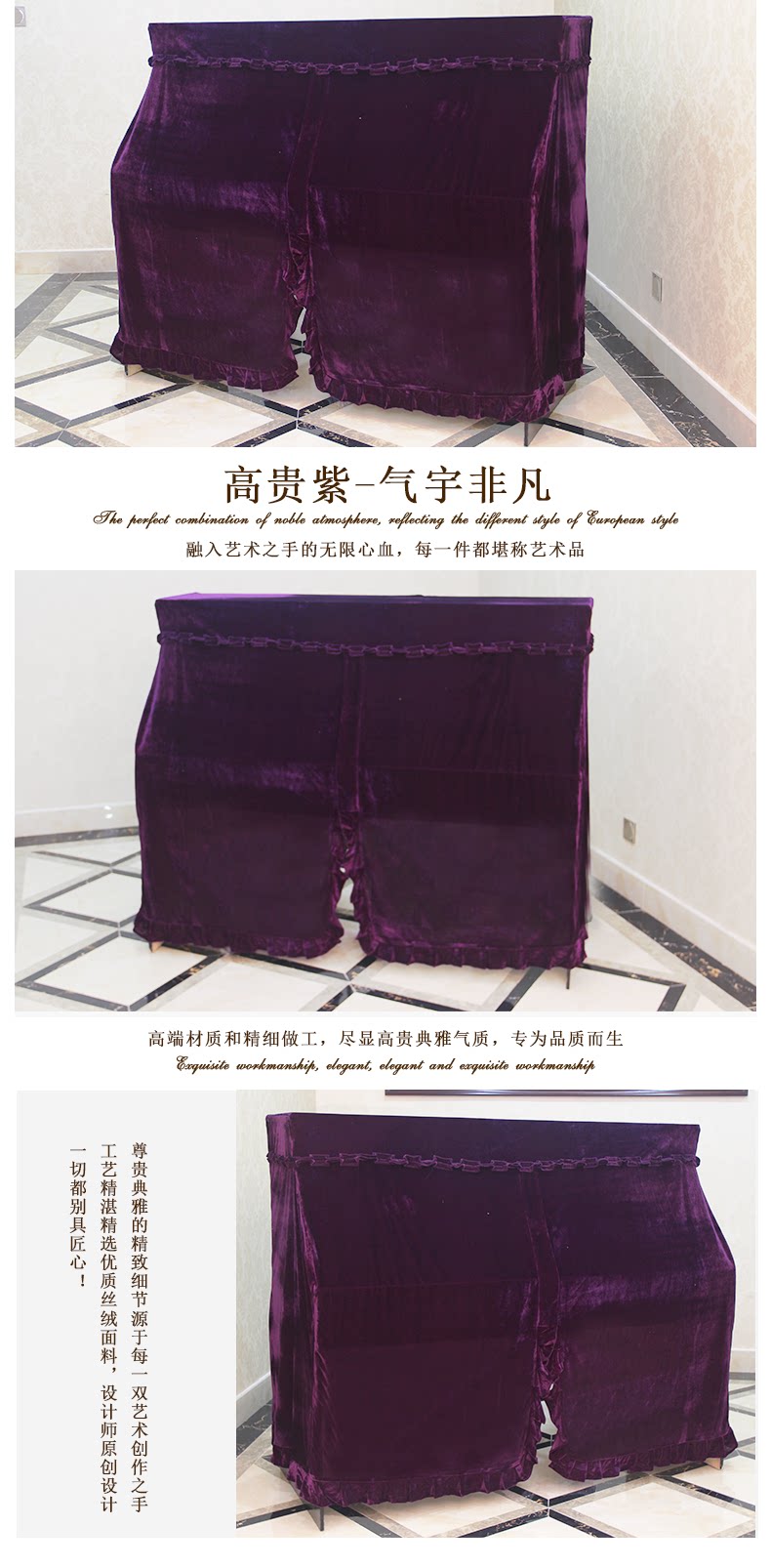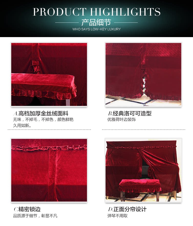 - Zhenpin Cheongsam Down Standard Piano Cover+Double Stool Cover