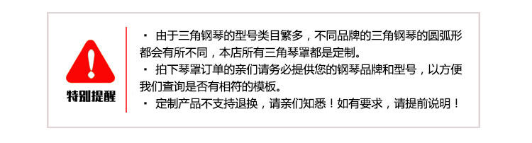 | Технические характеристики: | Стандартный треугольник, Треугольная крышка для фортепиано+крышка одиночного стула, Треугольная крышка для фортепиано+двойной стул крышка стула, Крышка треугольника выше 180, 180 или более треугольная крышка+крышка одиночного стула, 180 или более треугольная крышка+два -личностное наводнение стула, Крышка треугольника выше 2 метров, Треугольная крышка выше 2 метров+крышка для одного стула, Крышка треугольника выше 2 метров+двойная крышка стула |