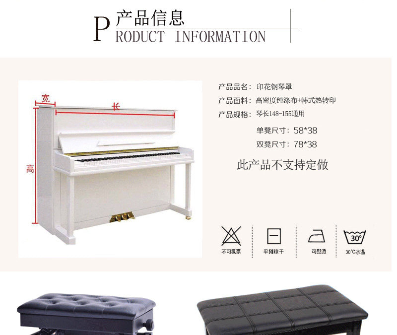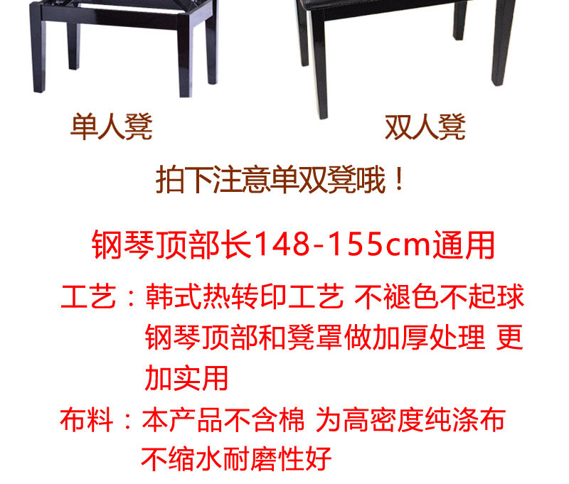 | Технические характеристики: | Длина фортепиано 148-155 Общая крышка фортепиано+рука с одним стулом, Длина фортепиано 148-155 Общая крышка фортепиано+рука с двойным стулом, Длина фортепиано 148-155 Общее пианино, Одиночная крышка стула (58*38), Двойная крышка стула (78*38) |