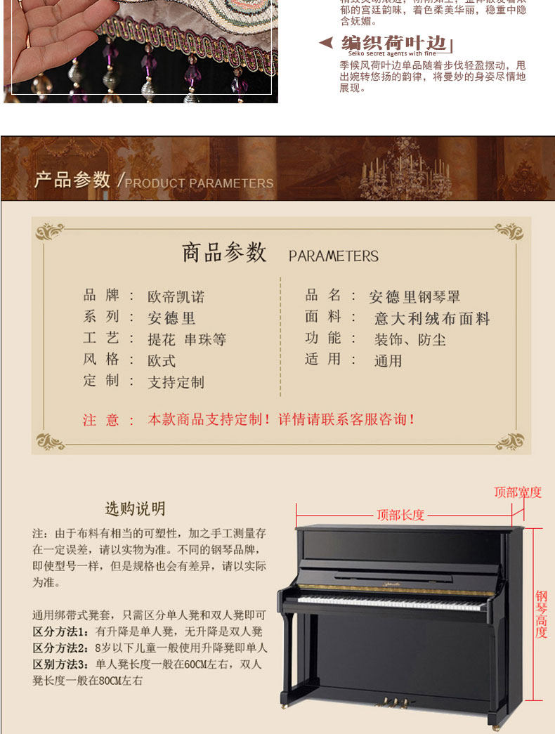 | Технические характеристики: | Крышка фортепиано 153*34*120+набор одиночного стула 57*37 (подъемный стул), Крышка фортепиано 153*34*120+Крышка двойного стула 77*37, Крышка фортепиано 155*38*125+набор одиночного стула 57*37 (подъемный стул), Крышка фортепиано 155*38*125+набор двойного стула 77*37 |