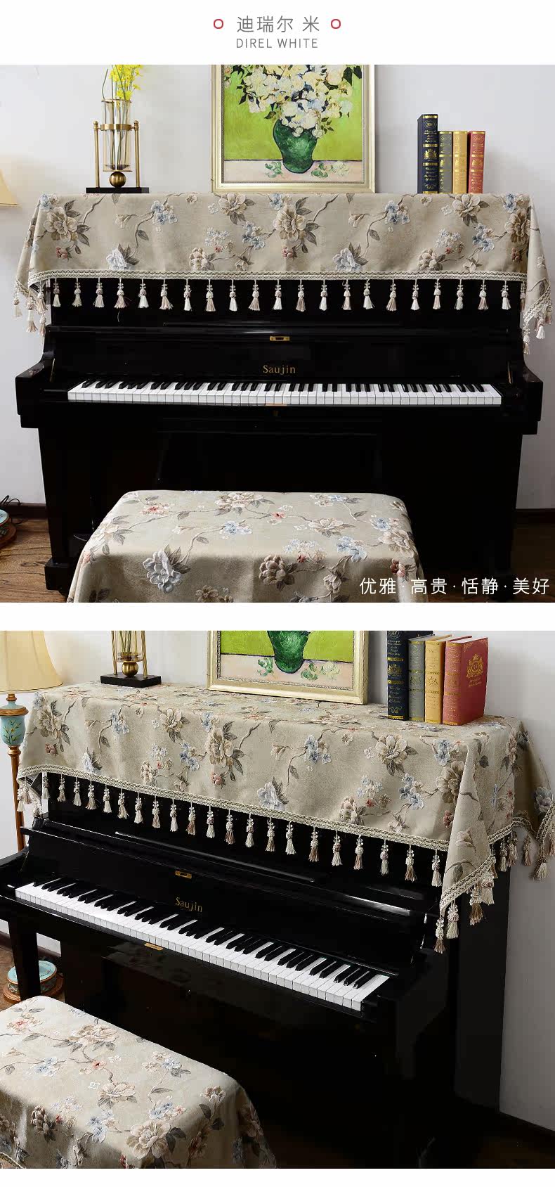 Европейский стиль фортепианного капюшона Половина, протеканный пылепроницаемым однородным электронным пианино -крышкой для фортепиано с полным капюшоном с высоким капюшоном подушка для фортепианной ткани ткань ткань ткань