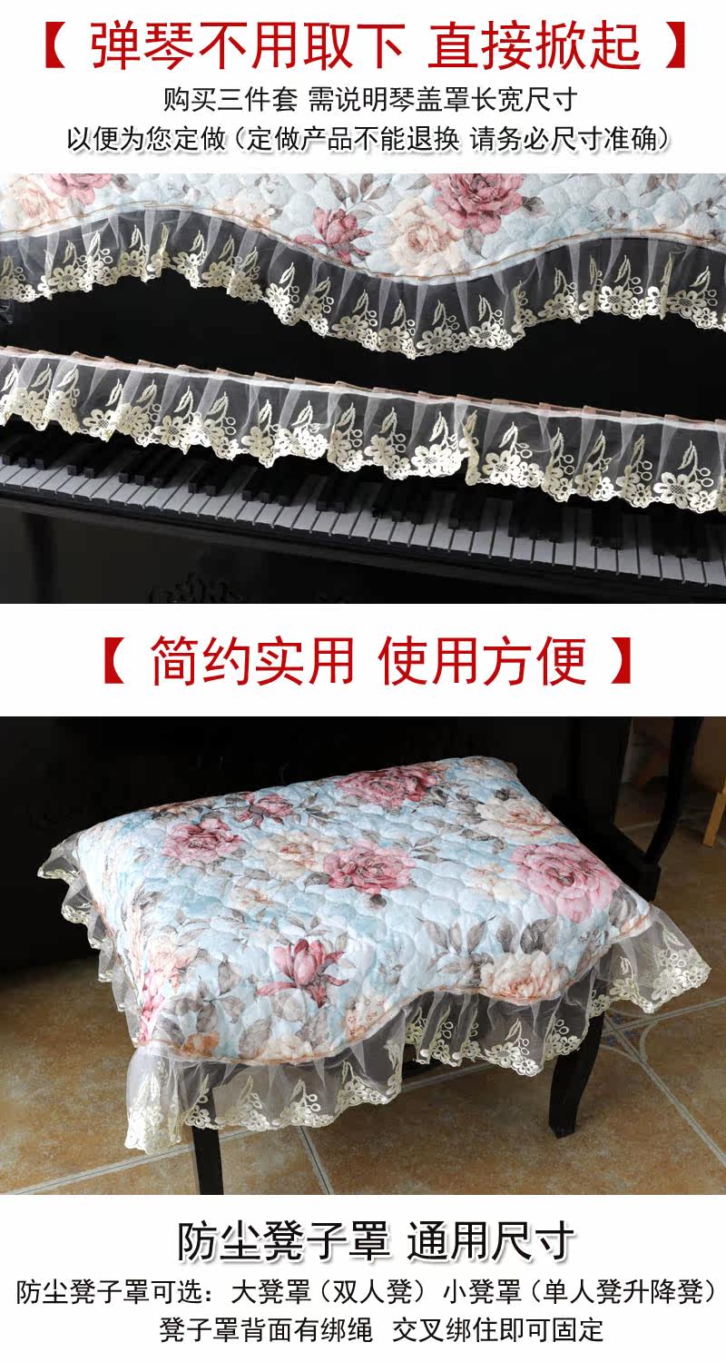 Можно сделать трехэтажный пылевой покров на фортепиано, полная половина фортепиано -табурета покрывает полное пианино в стиле в стиле европейской в стиле, настраиваемое покрытие для фортепиано -это пользовательский продукт, пожалуйста, проконсультируйтесь с размером измерения обслуживания клиентов.