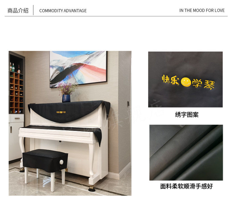 启颜 Современное пианино, полиуретановый комплект, пылезащитная крышка, клавиатура, накладки, простой и элегантный дизайн, 3 предмета
