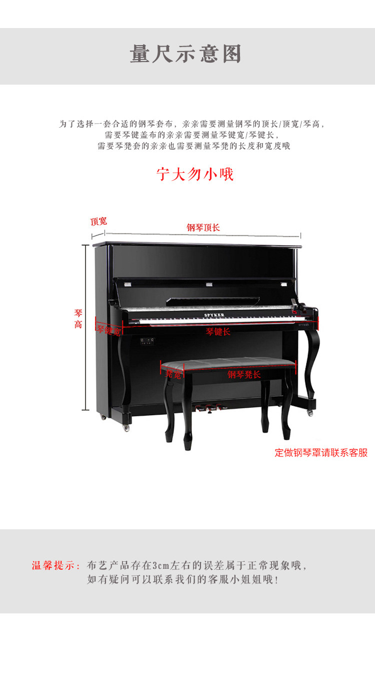 | Технические характеристики: | Пианино, 153×34см, Одиночная крышка стула 58*38 см (одиночная часть), Двойная крышка стула 78*38 см (одна часть), Крышка верхней части фортепиано + набор для одного табурета с одной частью, Пианино, комплект для двоих, Индивидуальный размер, пожалуйста, свяжитесь с обслуживанием клиентов |